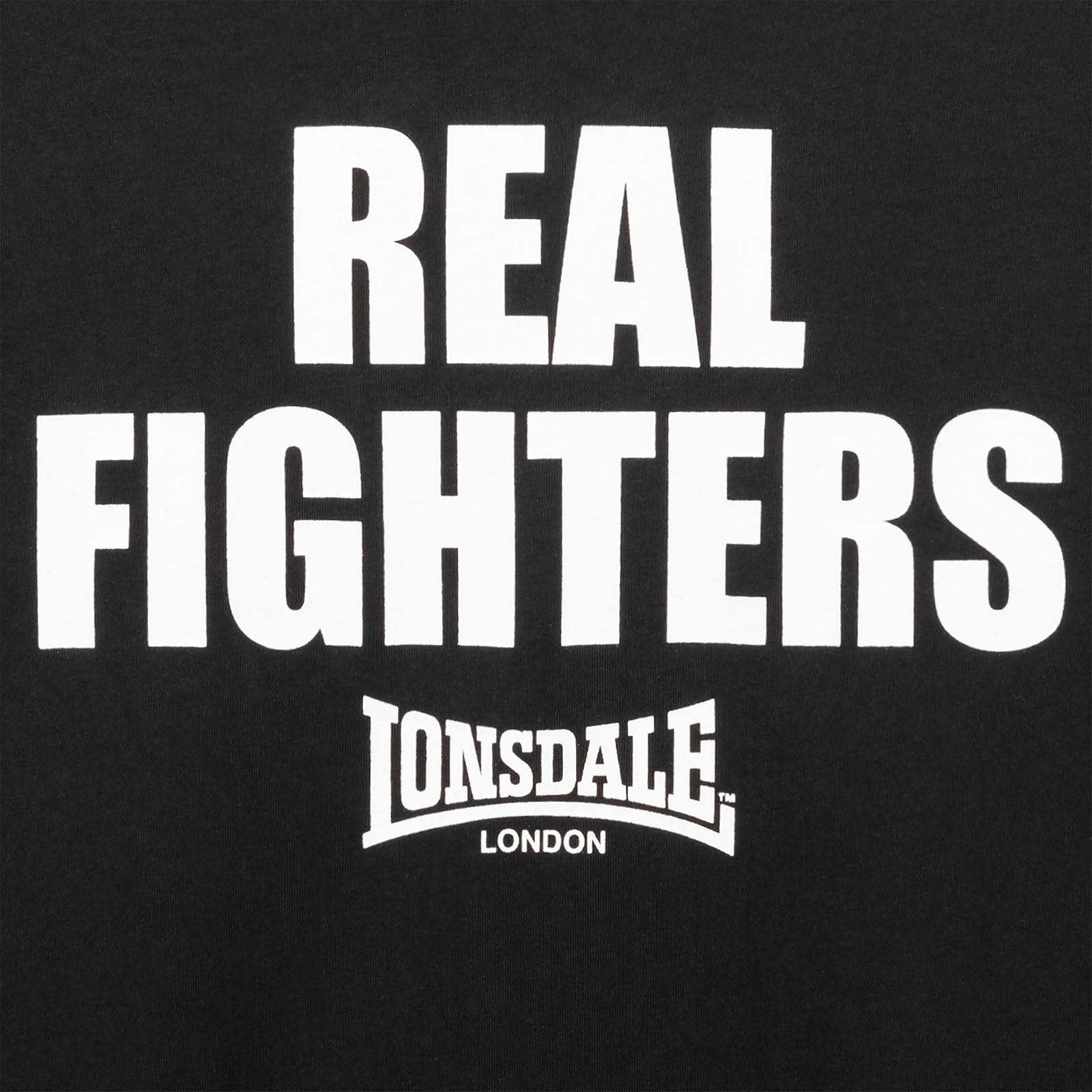 Dieses T-Shirt mit großem Print auf der Vorderseite ist etwas für wahre Kämpfernaturen! Neben dem gedruckten Schriftzug auf der Vorderseite, befindet sich auch im Nacken ein kleines Lonsdale Logo. Stylischer Look und echte Action: das Rundhalsshirt ist ein dynamischer Begleiter für sportliche Aktivitäten und lässige Outfits.