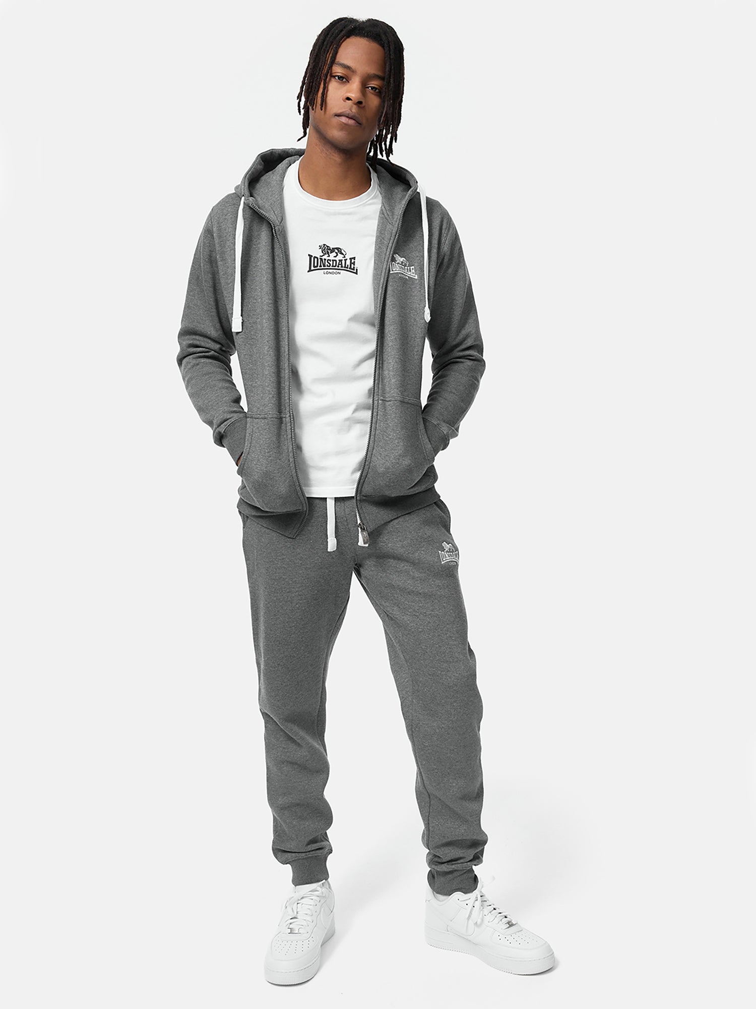 Ob im Gym oder zu Hause auf der Couch - der Trainingsanzug CROACHY ist für jeden Einsatz optimal geeignet. Die Sweatjacke mit durchgehendem Reißverschluss und die Jogginghose haben jeweils eine kleine Logo-Stickerei auf der Brust bzw. dem linken Oberschenkel. Die zahlreichen Taschen ermöglichen es dir die wichtigsten Utensilien zu verstauen. Sowohl der weiche Fleecestoff und die elastischen Bündchen schmiegen sich angenehm an den Körper an und sorgen für einen hohen Tragekomfort. Wenn du also weder beim Komfort noch beim Aussehen Kompromisse machen möchtest, ist der Trainingsanzug von Lonsdale der perfekte Partner für dich!