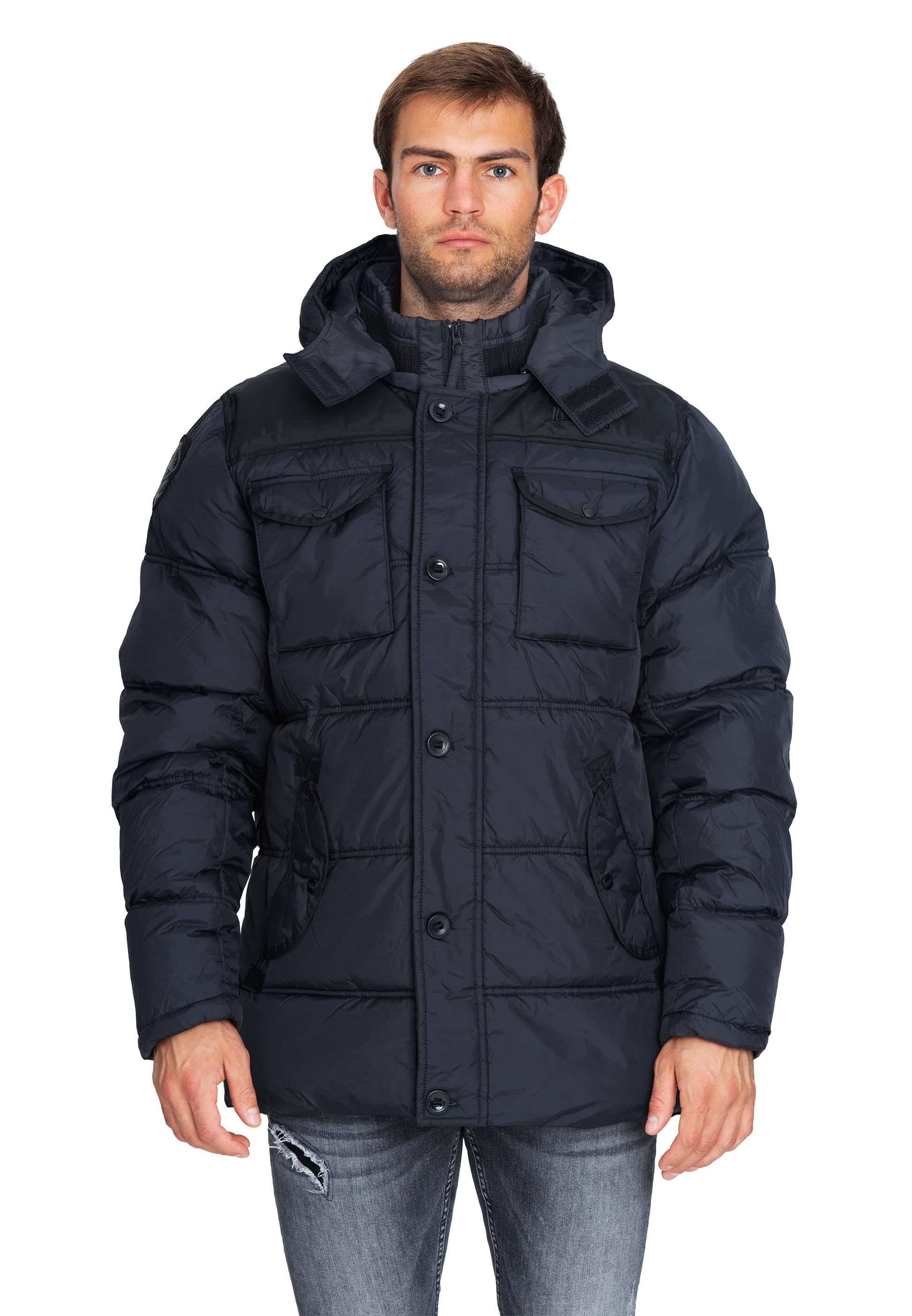 - Zwei Eingriffstaschen und zwei aufgesetzte Taschen