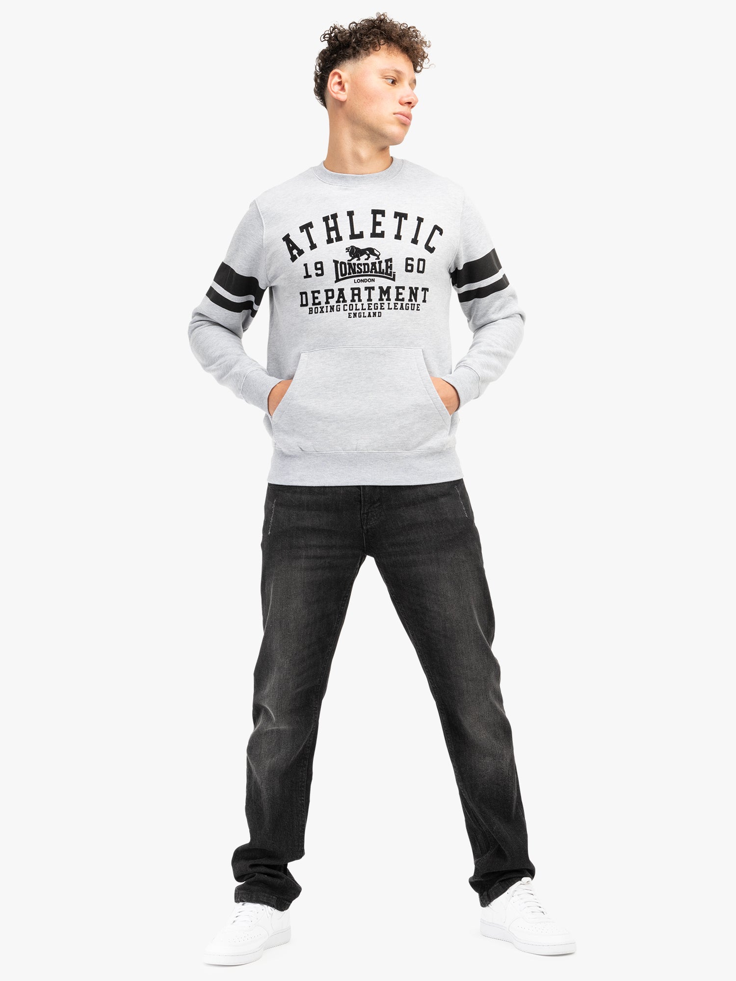 Klassisches Sweatshirt mit auffälligem Samt-Flockdruck sowie einer aufgenähten Kängurutasche auf der Vorderseite. Die Rückseite besticht dank eines kleineren Logo-Druckes und die Ärmel sorgen mit zwei horizontal aufgedruckten Streifen für Aufsehen. Dank der elastischen Bündchen am Halsausschnitt, den Ärmelenden und dem Saum ist eine optimale Passform garantiert und der weiche Fleece schmiegt sich angenehm an die Haut an.