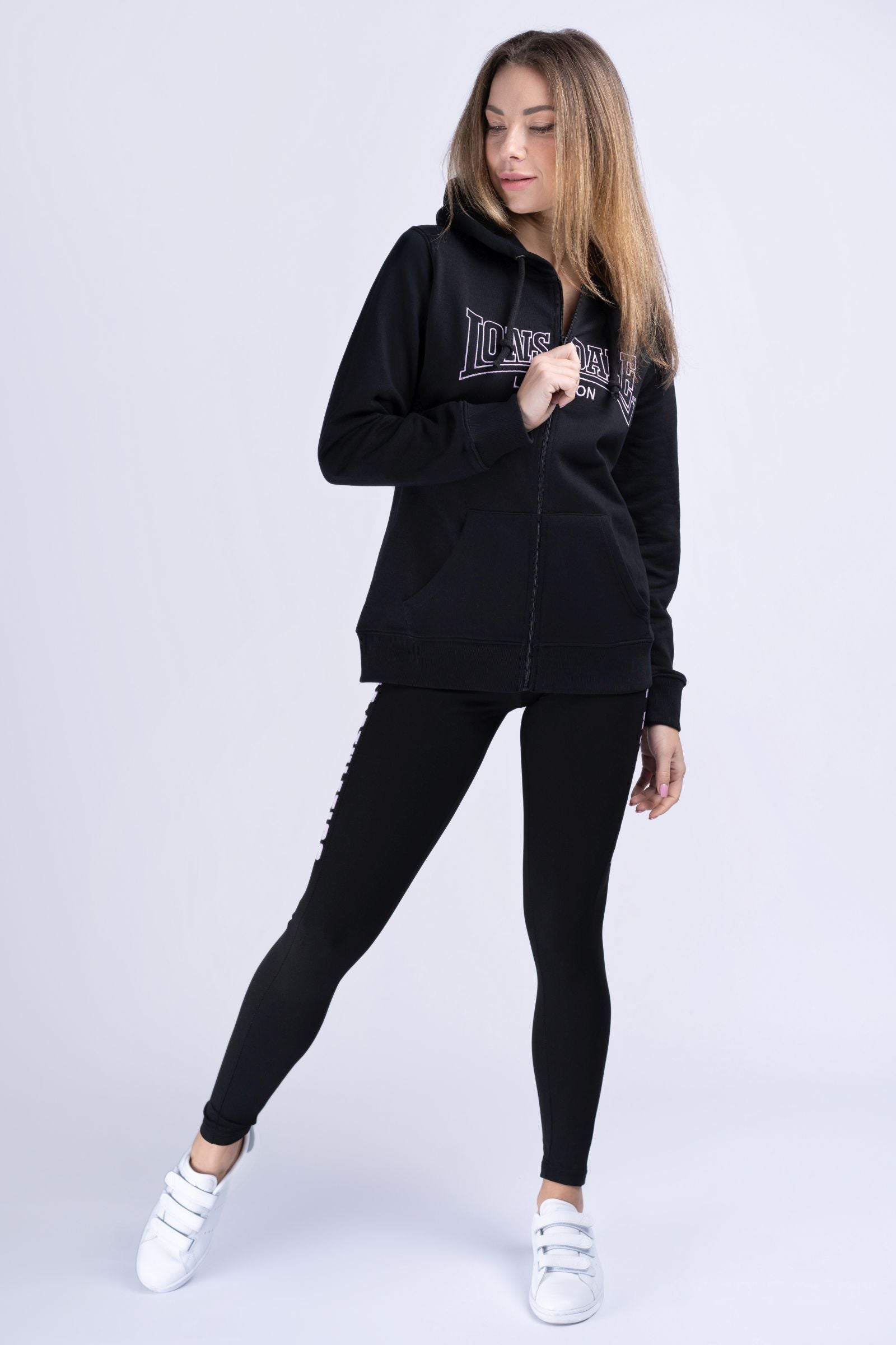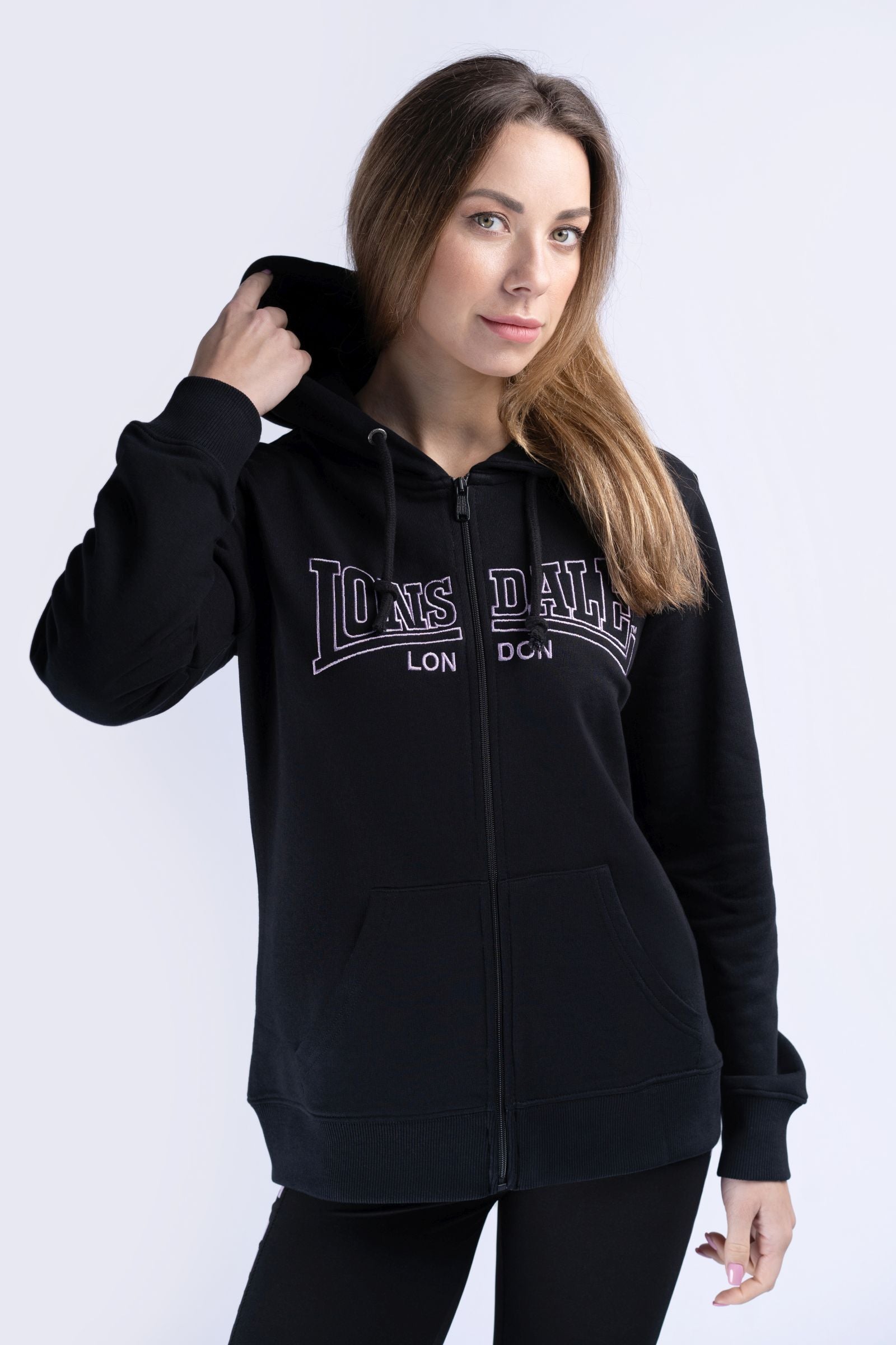 Ist die nicht lässig? Mit der bequemen Sweatjacke von Lonsdale machst du dein Outfit zu etwas ganz Besonderem. Für den coolen Hoodie-Look ist die Sweatjacke mit einer Kapuze, einer Kängurutasche und breiten Rippbündchen an den Säumen ausgestattet. Eine Logo-Stickerei auf der Brust und der zarte Schriftzug auf dem unteren Rücken runden das Design der figurumschmeichelnden Jacke stilsicher ab. Fehlen nur noch komfortable Jogginghose und ein Top - schon bist du bereit für entspannte Stunden oder auch ein schweißtreibendes Workout.