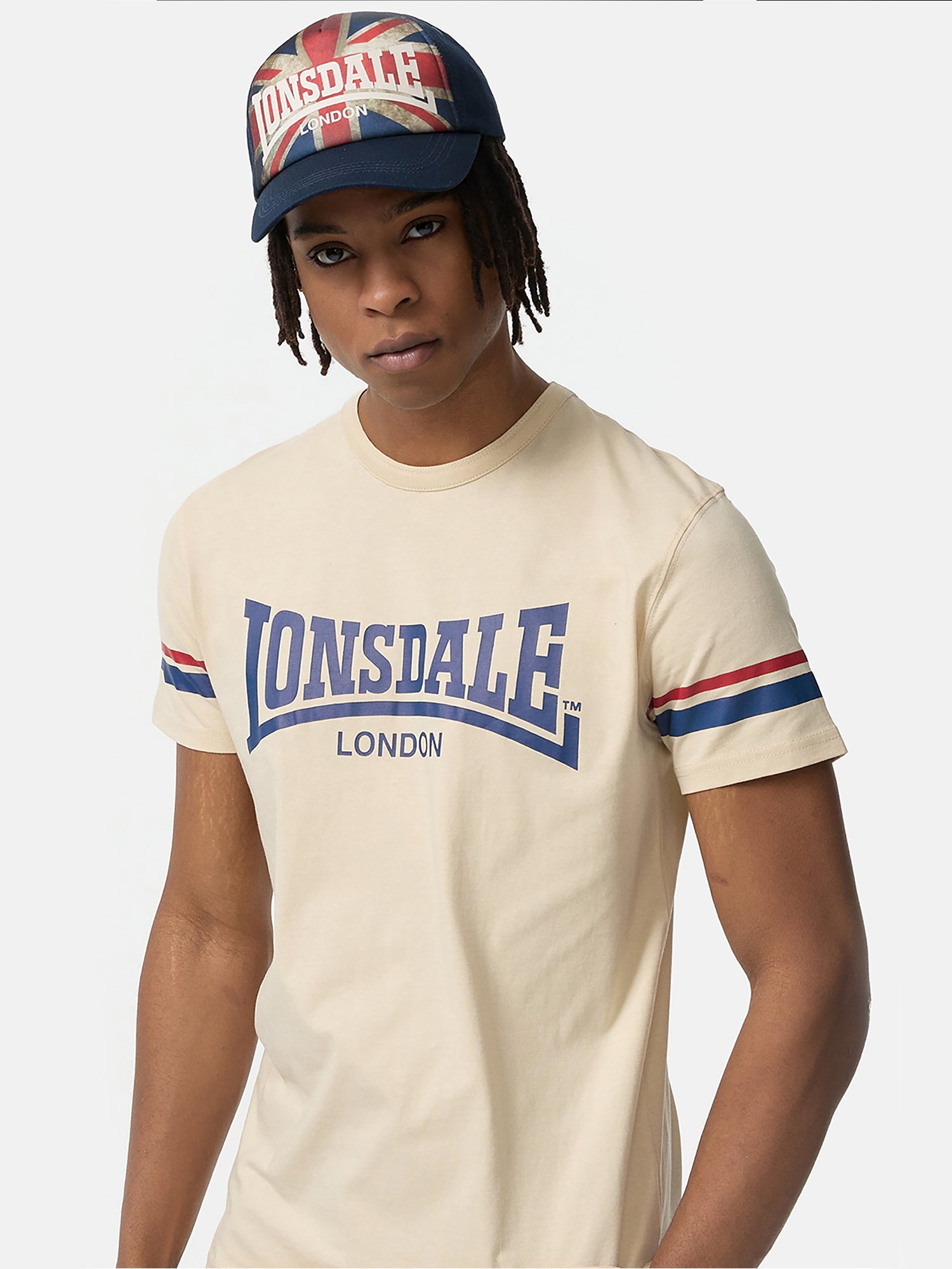 Kappe von LONSDALE mit ausgefallenem Design. Die Kappe hat einen mehrfarbigen Flaggen- und Logodruck auf der Vorderseite, der alle Blicke auf sich zieht. Das angenehme Tragegefühl, die Möglichkeit zur Weitenregulierung am Hinterkopf und umstickte Luftösen machen diese Kappe zu einem sportlichen Accessoire.