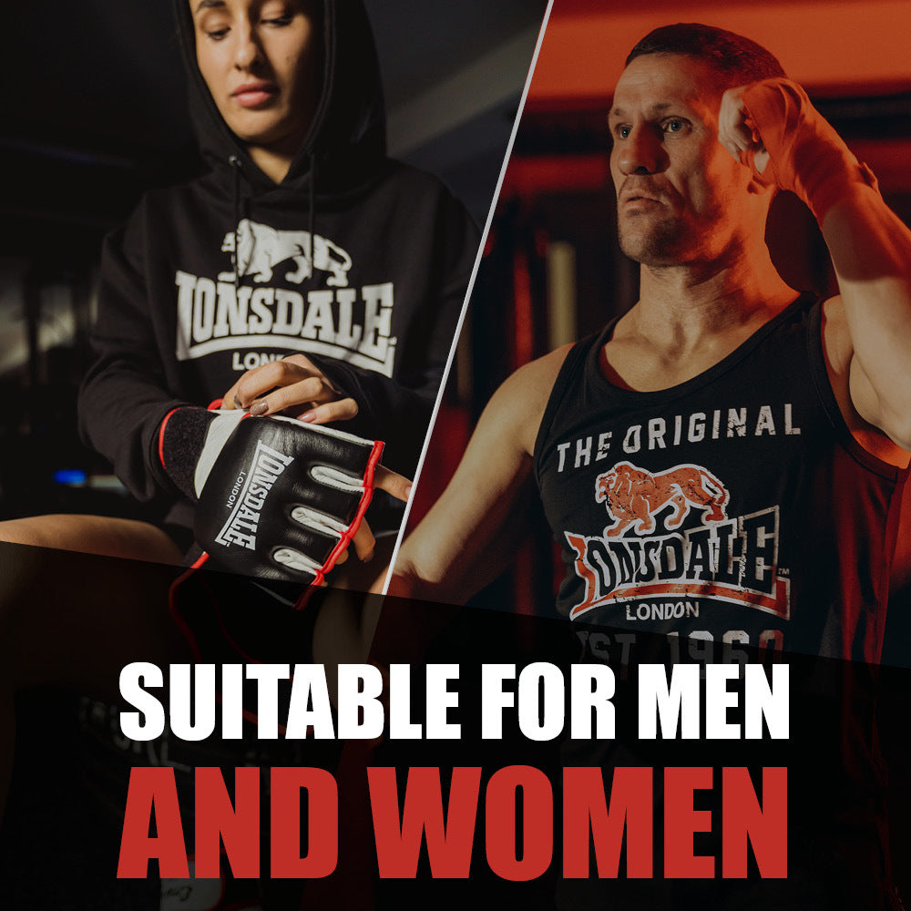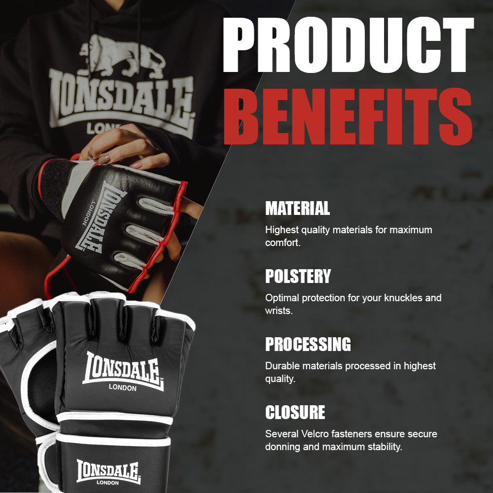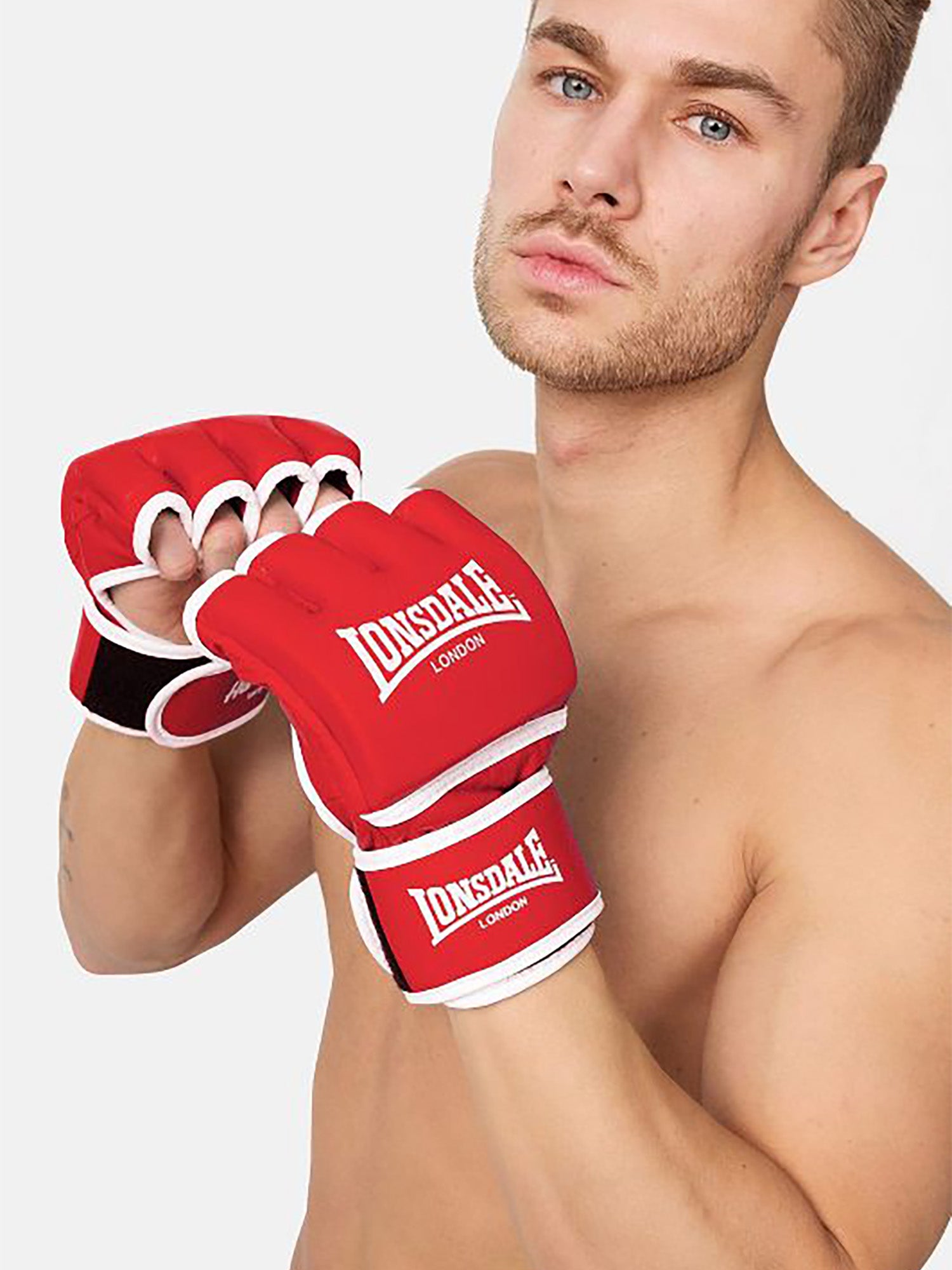 Gefertigt aus hochwertigem Kunstleder verfügt dieser MMA Trainigshandschuh über ein Verschlusssystem mit einem starken Klettverschluss, der für eine optimale Passform und starken Halt während des Trainings sorgt. Die dicke, ergonomisch geformte Polsterung bietet hervorragenden Schutz der Handknöchel. Zwei LONSDALE Markenprints ergänzen den coolen Look.