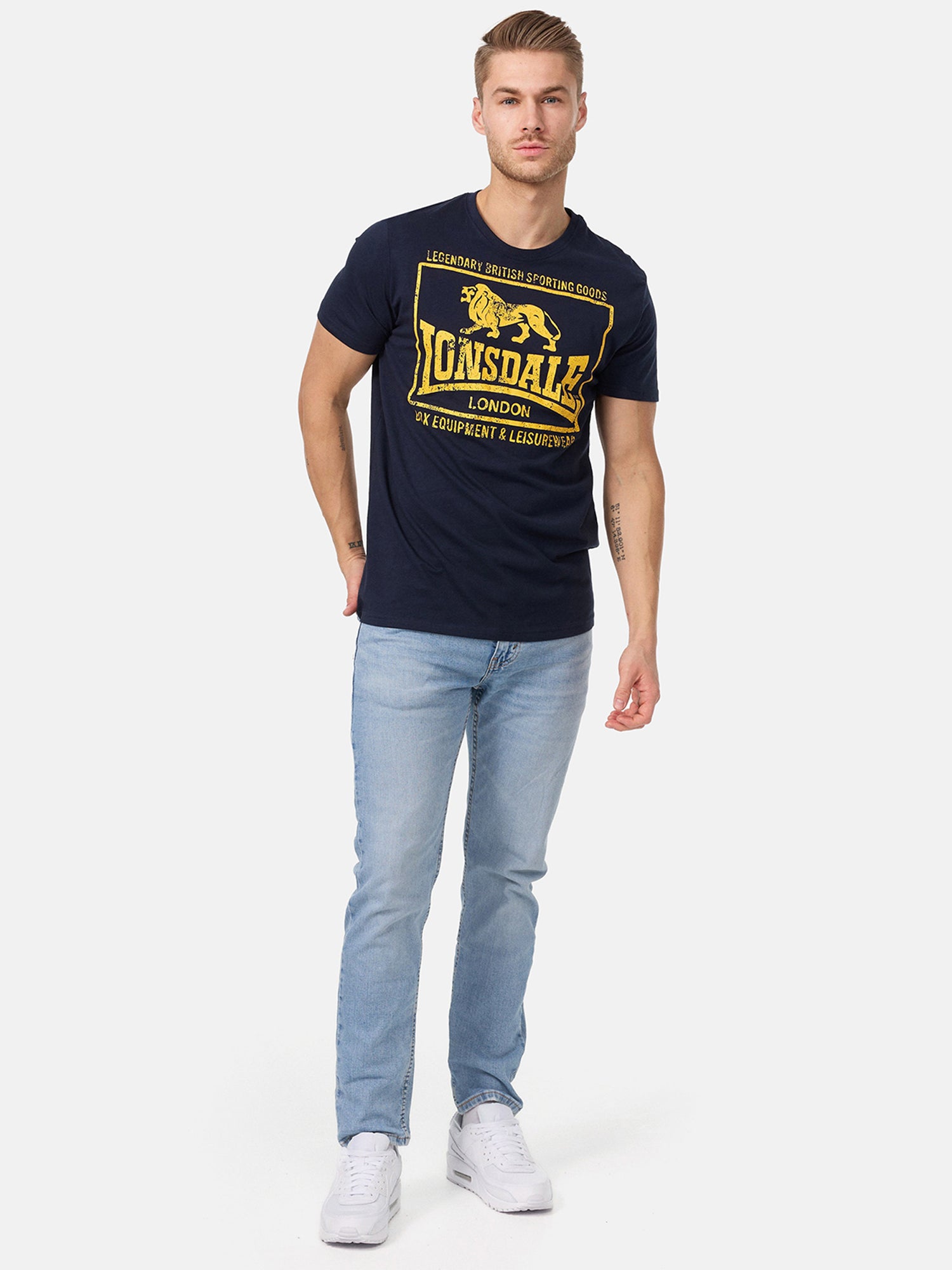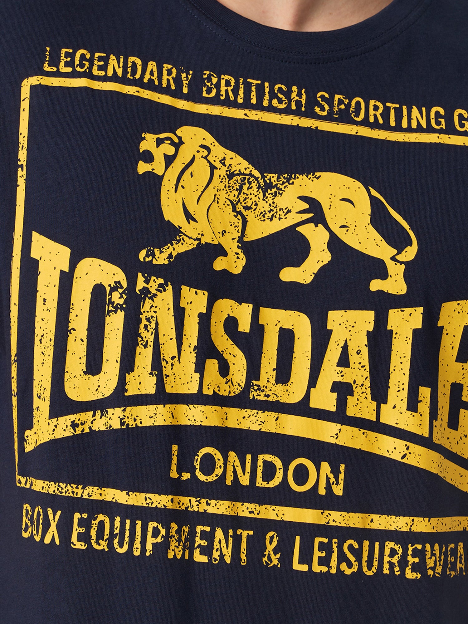 Wer auf der Suche nach einem klassisch-sportlichen T-Shirt ist, liegt beim Modell HOUNSLOW der Marke Lonsdale goldrichtig. Das schlichte Grunddesign wird durch einen einfarbigen Frontprint in Used-Optik ergänzt. Dieser setzt das bekannte Löwen-Logo der britischen Traditionsmarke in Szene. Kombinier deine liebste Denim dazu und genieß die weichen Eigenschaften des Jerseys!