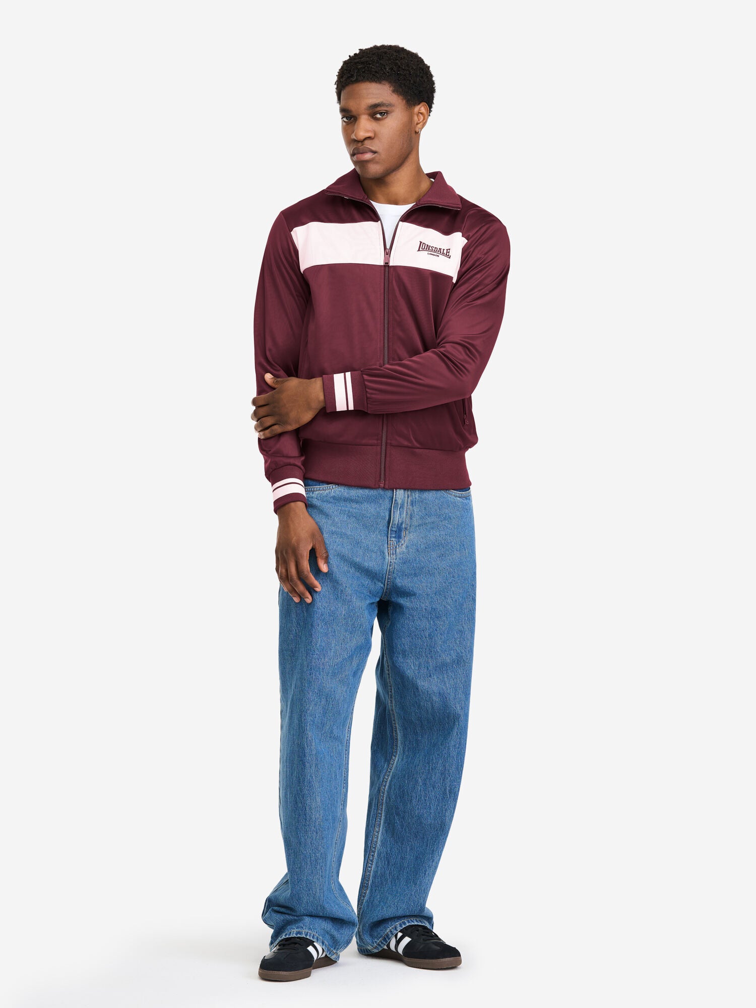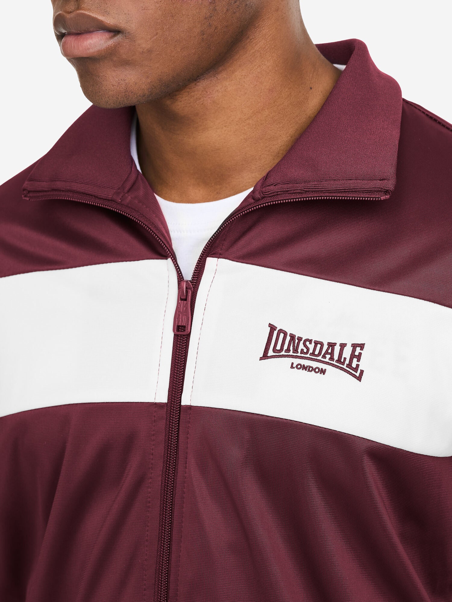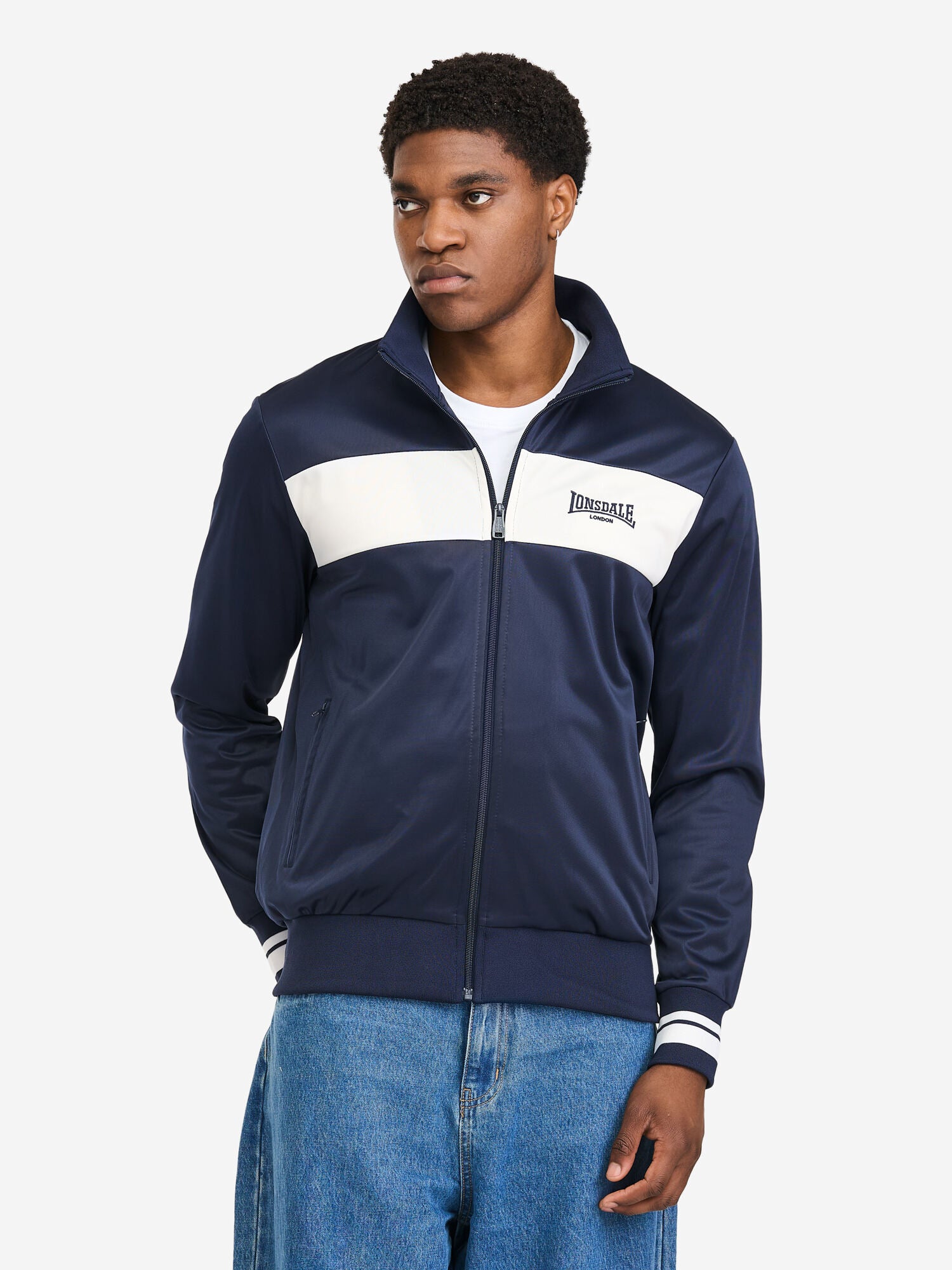 Die Herren Trainingsjacke von Lonsdale überzeugt durch ihre normale Passform, praktischen Reißverschluss und Eingriffstaschen. Das Design wird durch zwei Logo-Stickereien auf der Brust und unterhalb des Halsausschnitts sowie einen farblich abgesetzten Streifen auf der Brust geprägt. Elastische, gestreifte Bündchen an Ärmeln, Stehkragen und ein einfarbiger Saum sorgen für eine perfekte Passform. Gefertigt aus Trikot-Fleece bietet sie angenehmen Komfort – ideal für Sport, Freizeit und Alltag.