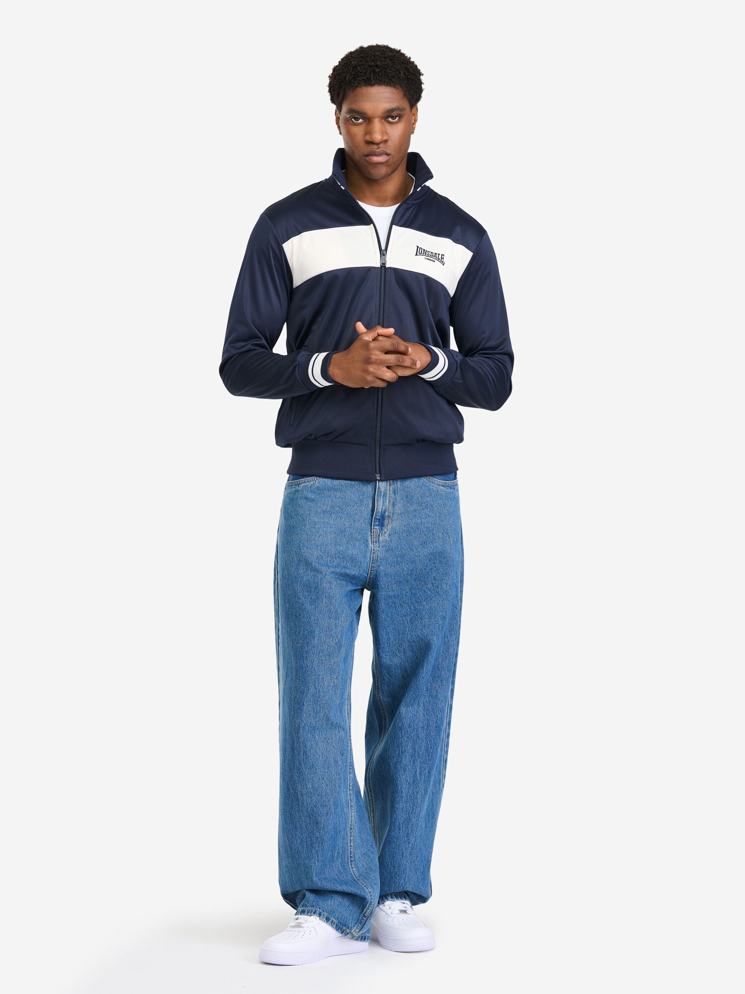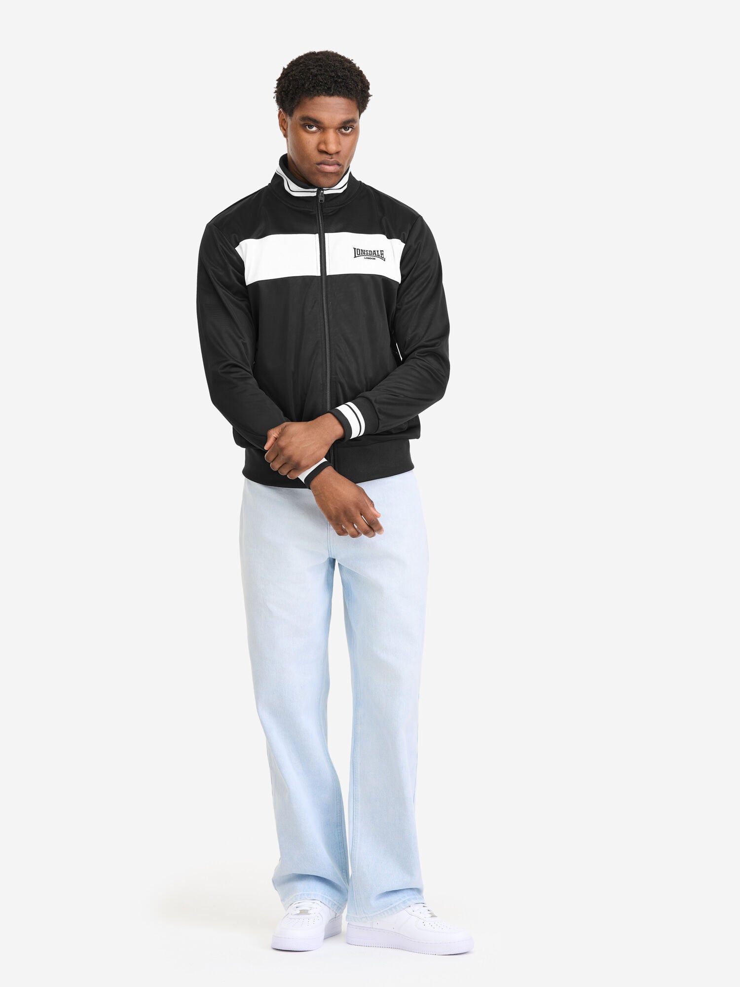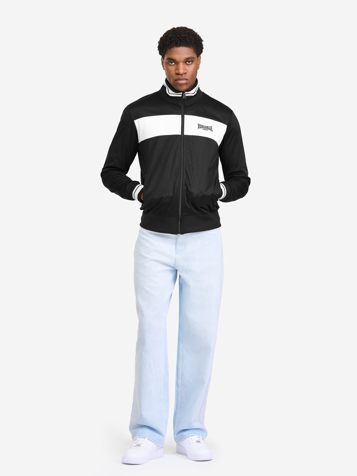 Die Herren Trainingsjacke von Lonsdale überzeugt durch ihre normale Passform, praktischen Reißverschluss und Eingriffstaschen. Das Design wird durch zwei Logo-Stickereien auf der Brust und unterhalb des Halsausschnitts sowie einen farblich abgesetzten Streifen auf der Brust geprägt. Elastische, gestreifte Bündchen an Ärmeln, Stehkragen und ein einfarbiger Saum sorgen für eine perfekte Passform. Gefertigt aus Trikot-Fleece bietet sie angenehmen Komfort – ideal für Sport, Freizeit und Alltag.