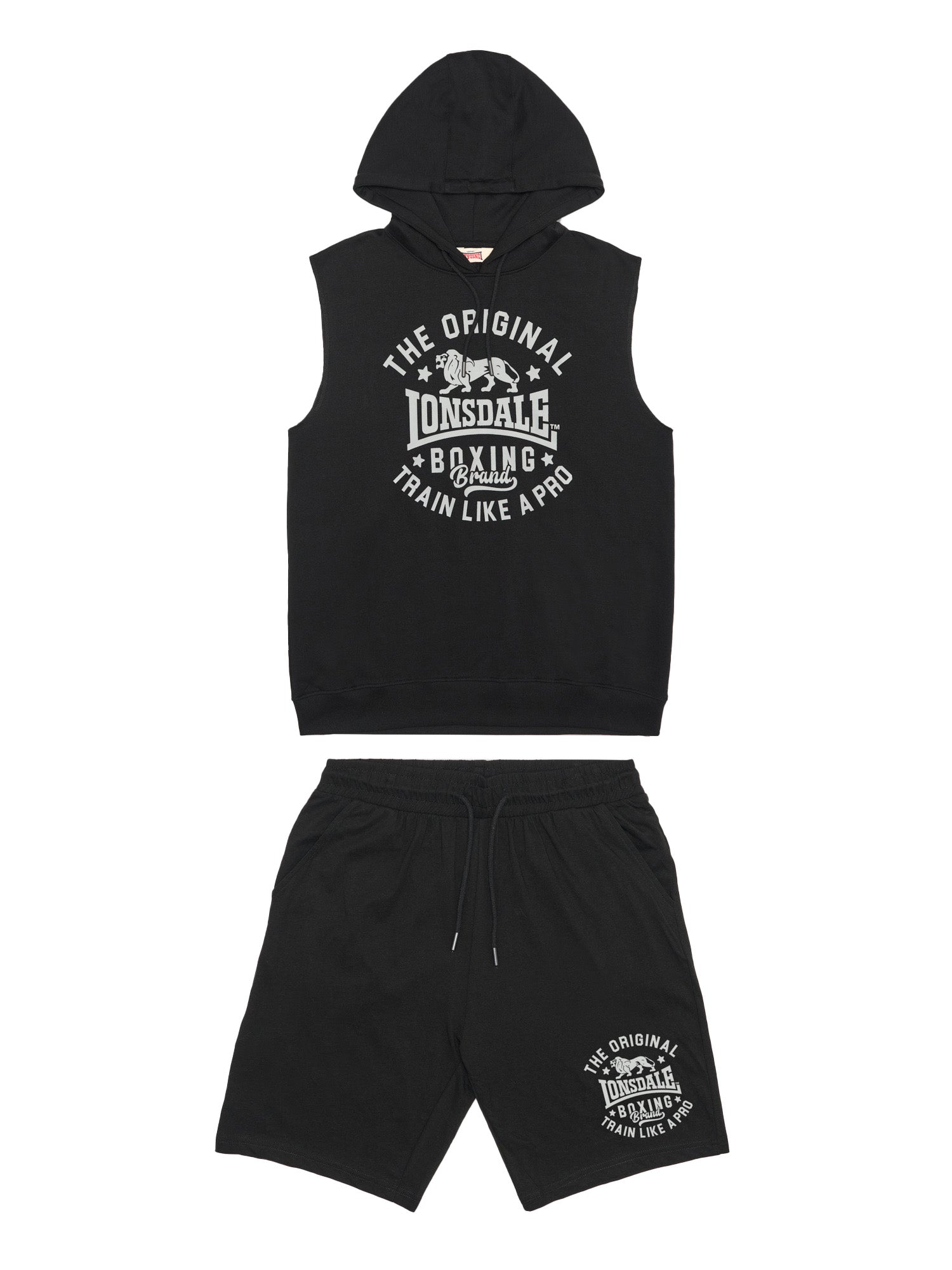 Das zweiteilige Set von Lonsdale eignet sich ideal für alle Fans des Boxsportes. Der ärmellose Hoodie und die Shorts haben beide einen tollen Druck auf der Brust bzw. dem linken Oberschenkel. Durch diese wird nicht nur das Design aufgewertet, sondern auch die lange Verbindung von Lonsdale zum Boxsport hergestellt. Die drei Taschen an der Hose (2 Stück vorne, 1 hinten) bieten zudem genügend Stauraum, um deinen Schlüssel oder dein Smartphone zu verstauen. Dank des weichen Fleecestoffes ist das Set angenehm auf der Haut und bietet dir neben dem coolen Look auch einen hohen Tragekomfort.