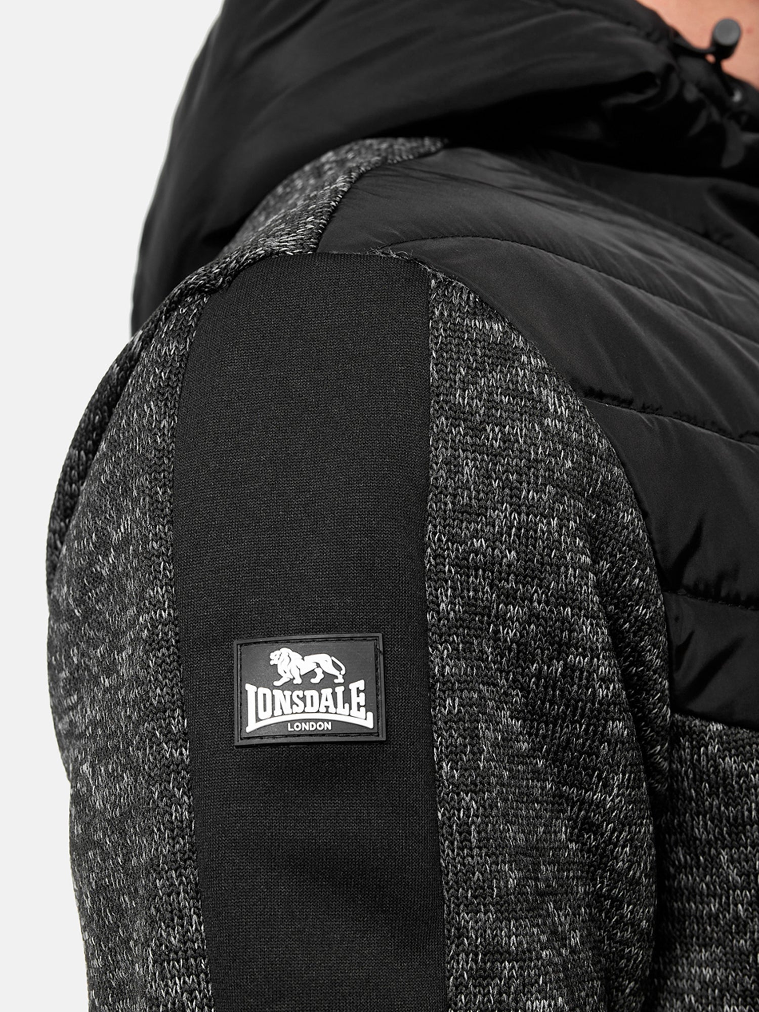 Unverzichtbar für die Übergangszeit im Frühjahr und Herbst: die zweifarbige Jacke von Lonsdale! Im Bereich der Kapuze sowie der Brust ist die Jacke leicht wattiert und hält leichte Windböen von deiner Haut fern. Der restliche Teil besteht aus einer super angenehmen Doppelware. Die Vorderseite besteht aus einer melierten Strickware und die Rückseite ist ein angerauter Fleecestoff, der sich durch seine Weichheit auszeichnet. Kleine Labeldetails wie die gummierten Badges oder das gewebte Logo an der Seitennaht werten das Design der Jacke auf und die Reißverschlusstaschen sorgen für den nötigen Komfort. An den Säumen befinden sich elastische Rippbündchen, die in derselben Farbe wie die Kapuze sowie die Ärmeleinsätze gehalten sind. Cool aussehen, ohne zu frieren – mit der Jacke von Lonsdale.