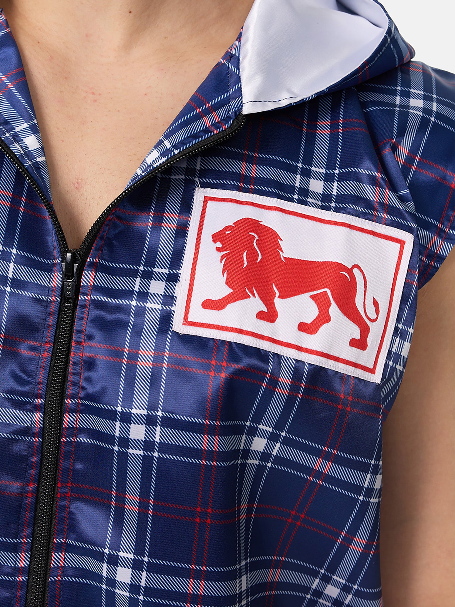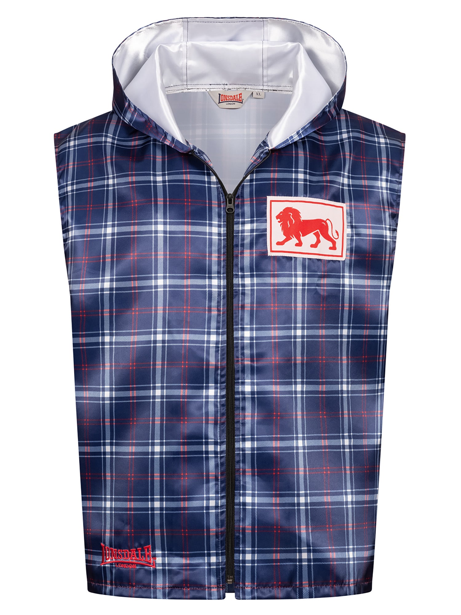 Diese modische ärmellose Ringjacke von LONSDALE ist mit Kapuze und aus glänzendem Polyester-Satin gefertigt. Für coole Hingucker sorgen die Logodetails auf der linken Brust, am Saum und an der Kapuze. Diese kannst du beim Einlaufen lässig über den Kopf ziehen. Wenn du im Ring angekommen bist, vereinfachen der durchgehende Reißverschluss sowie die extra weiten Armlöcher das Ausziehen der Jacke. Mit dem Oberteil brauchst du dir um dein Outfit auch keine Gedanken zu machen und kannst dich voll auf die nächste Zeit im Ring konzentrieren.
