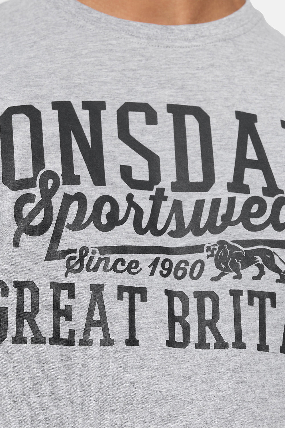 Das kurzärmelige Shirt von Lonsdale mit aufgedruckten Schriftzügen auf der Brust ist der optimale Begleiter für sportliche Aktivitäten und lässige Outfits. Denn dank des klassischen Rundhals-Ausschnittes und der geraden Passform liegt das Modell bequem am Körper an. Durch die Verwendung eines weichen Trikots aus hochwertigem Mischgewebe wird der Tragekomfort noch verstärkt.