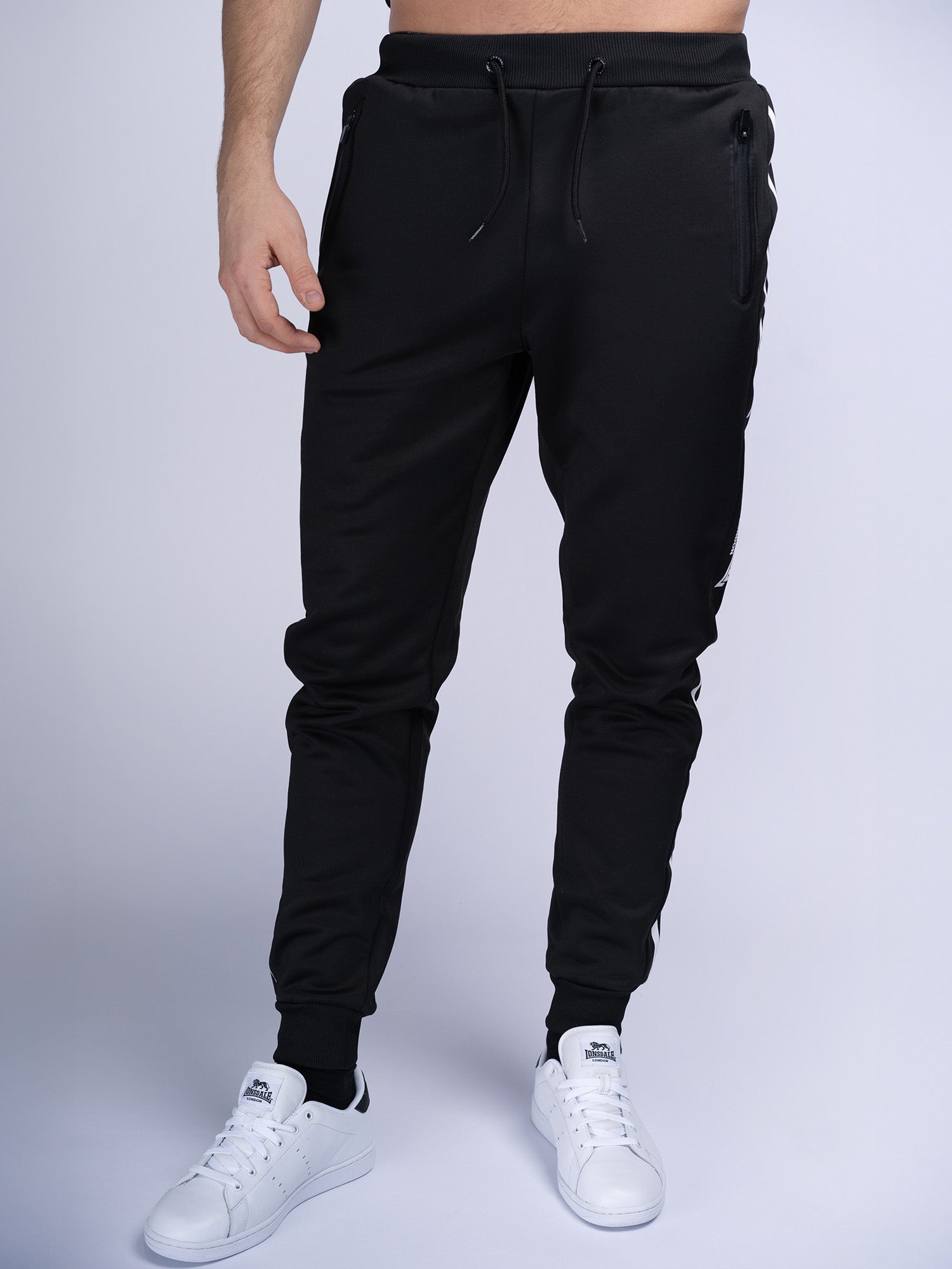 Super bequem und zugleich modisch: die Jogginghose DUNGENESS. Mit den farblich abgesetzten Streifen an den Seitennähten und den beiden Lonsdale-Logos macht sie richtig was her und die Reißverschlusstaschen bieten den nötigen Komfort. Auch in der aufgegebähten Tasche auf der Rückseite können kleine Utensilien verstaut werden. Der innen angeraute Fleecestoff liegt angenehm weich auf der Haut und sorgt dafür, dass du stets warm angezogen bist. Kurz gesagt: rundum ein cooler Begleiter für Sport und Freizeit.