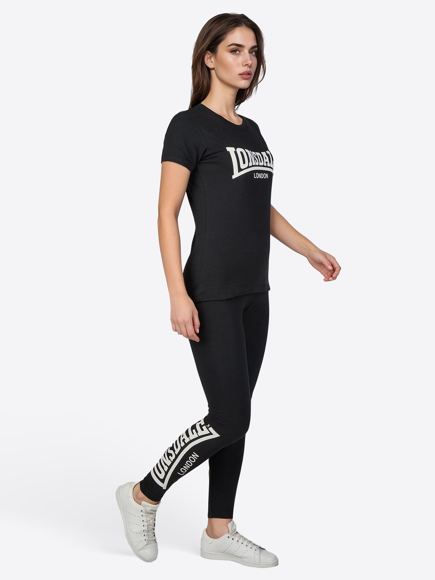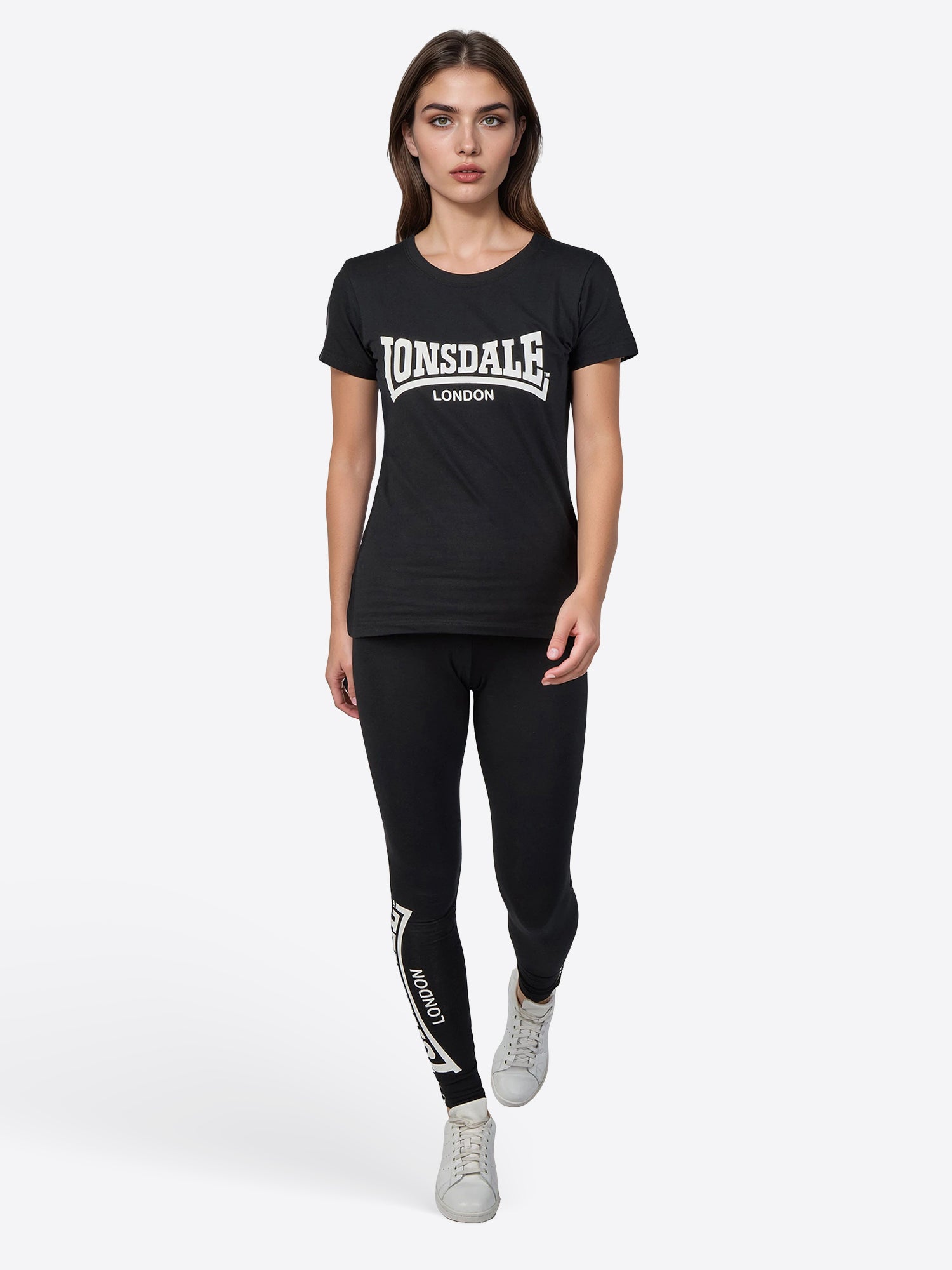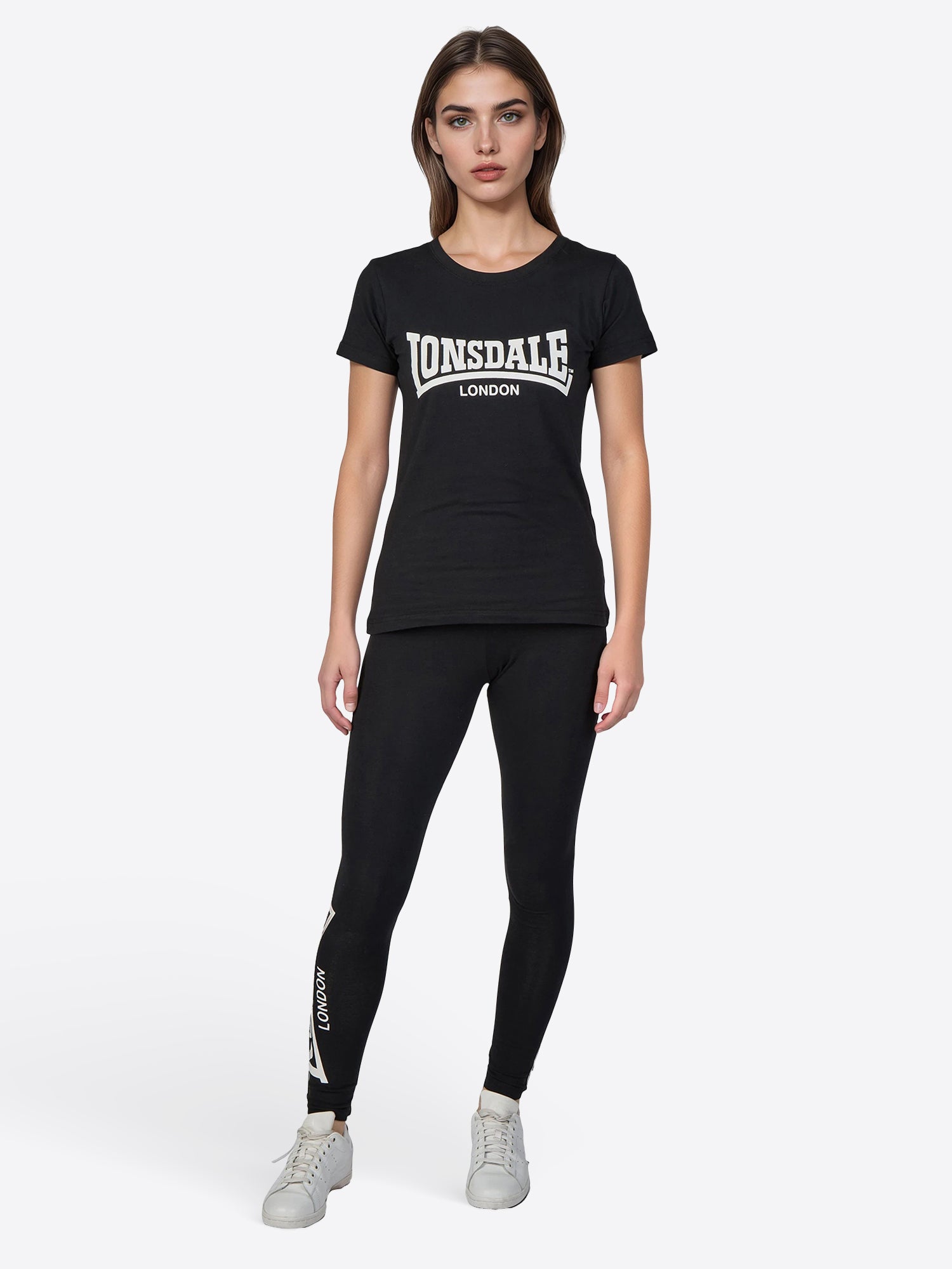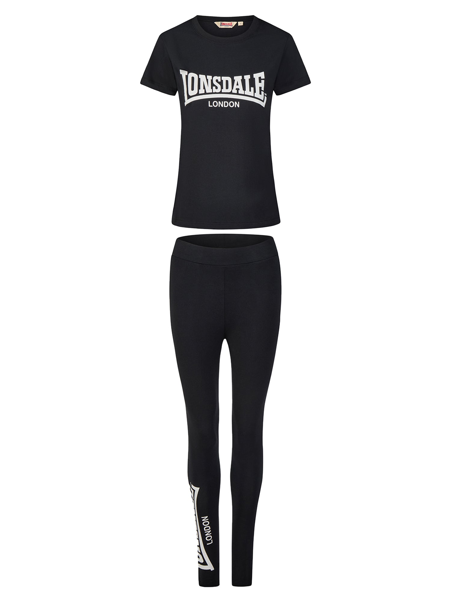 Dieses Set, bestehend aus einem bequemen T-Shirt und einer passenden Leggings, ist perfekt für jeden casual Look. Sowohl das T-Shirt als auch die rechte Wade der Leggings zieren kontrastfarbene, auffällige Lonsdale-Prints, die sofort ins Auge fallen. Das schlichte Design aus weicher Baumwolle sorgt für ein angenehmes Tragegefühl, optimale Bewegungsfreiheit und eine enganliegende Passform. Ob im Alltag oder beim Workout – mit diesem Set präsentierst du dich sportlich, stilvoll und bequem zugleich.
