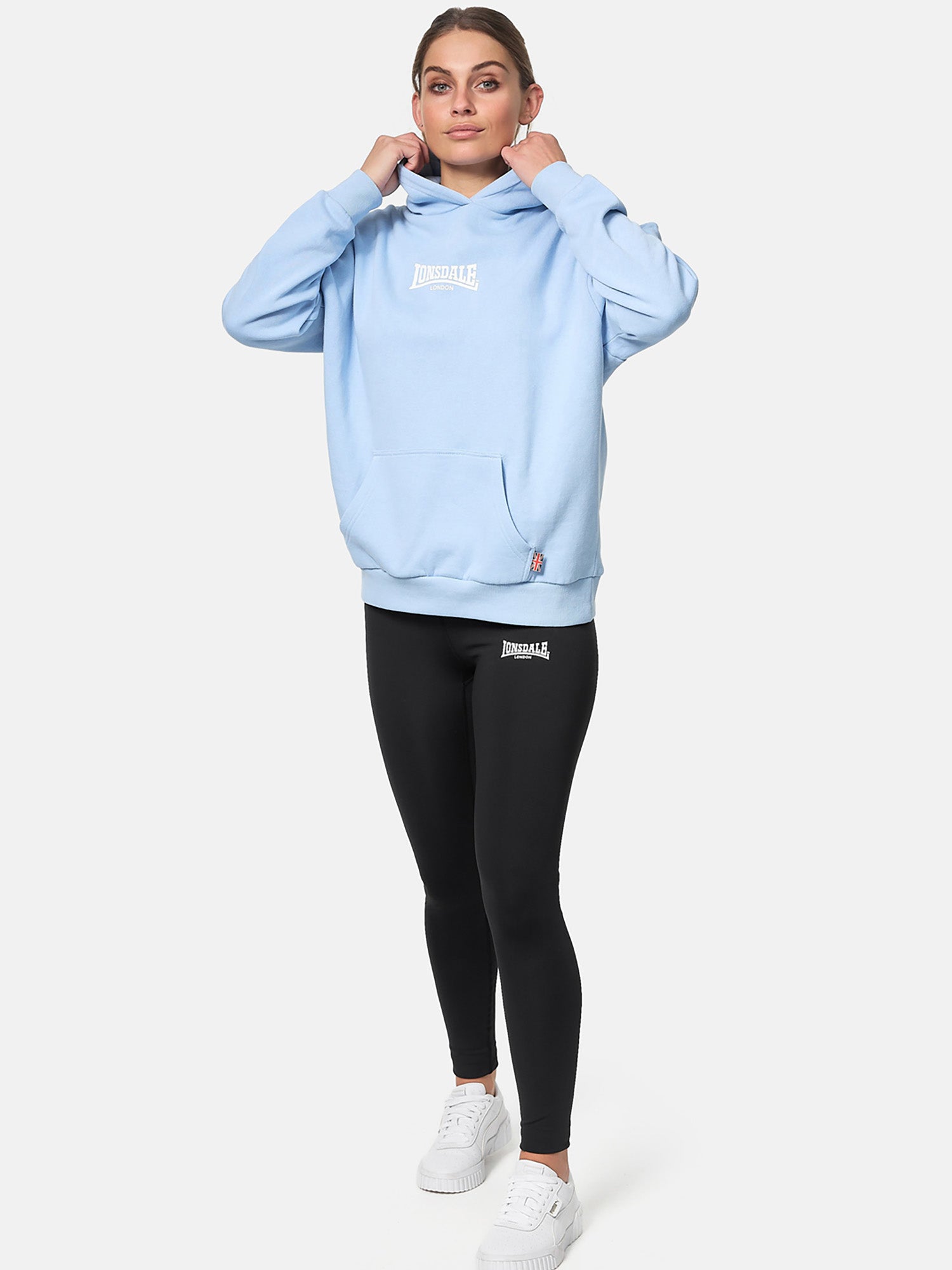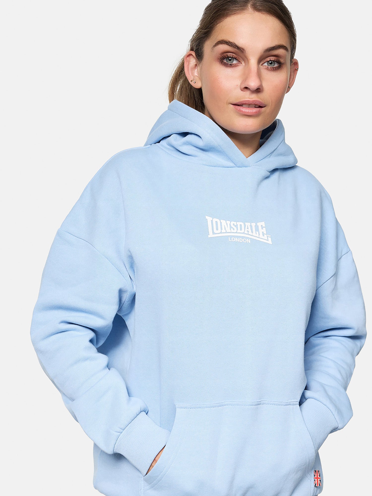 Der Hoodie KILMOTE ist aufgrund seiner weiten Passform (Oversize) für einen besonders lässigen Look geeignet. Während die Drucke auf der Vorder- und Rückseite alle Blicke auf sich ziehen, sorgt die praktische Kängurutasche für den nötigen Komfort. Die elastischen Rippbündchen an Ärmeln und Saum sowie die weiche Sweatqualität sorgen für einen hohen Tragekomfort. Mit anderen Worten: Das Kapuzensweatshirt von Lonsdale hält, was Frauen von lässigem Freizeitmode erwarten!