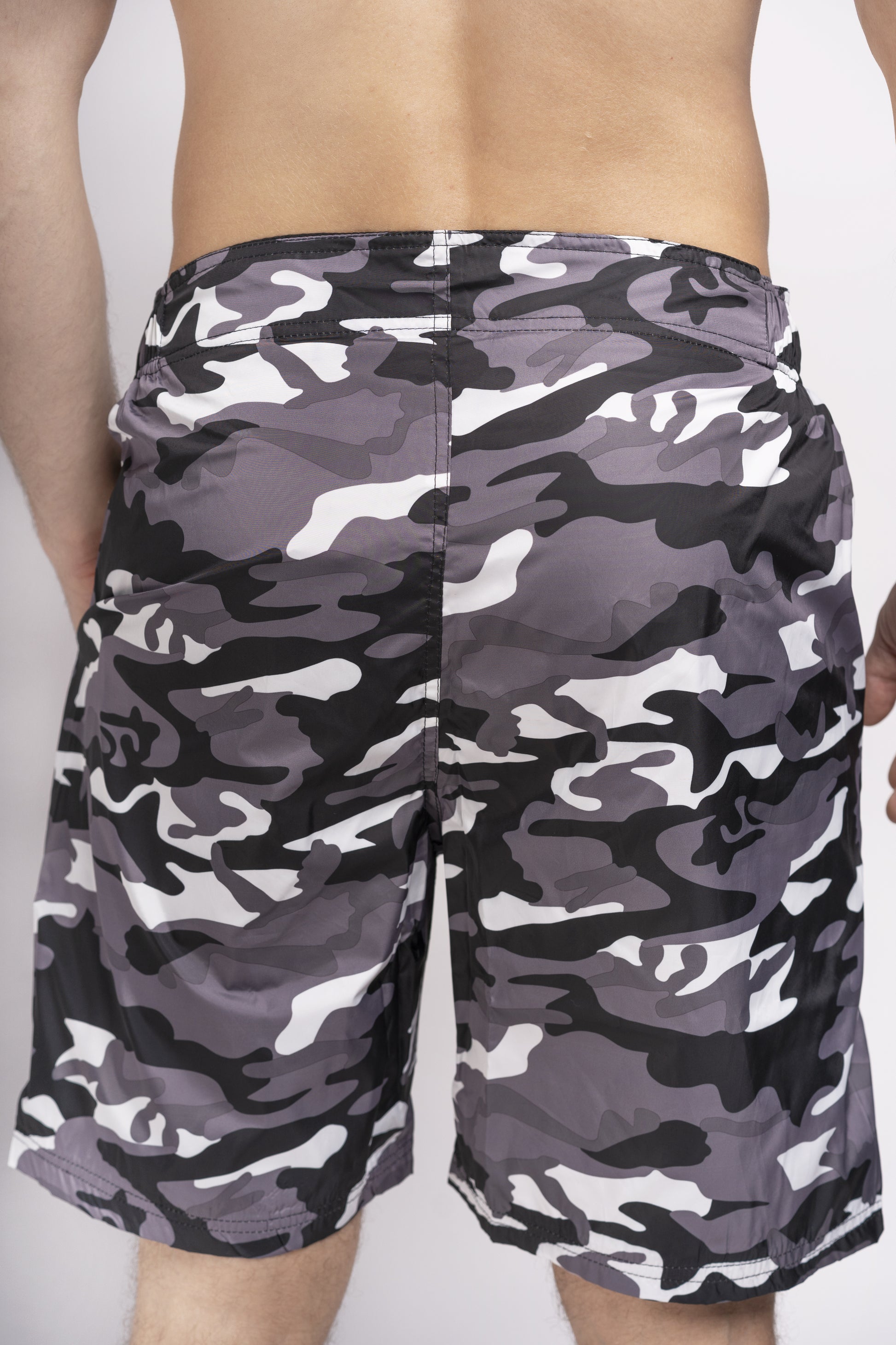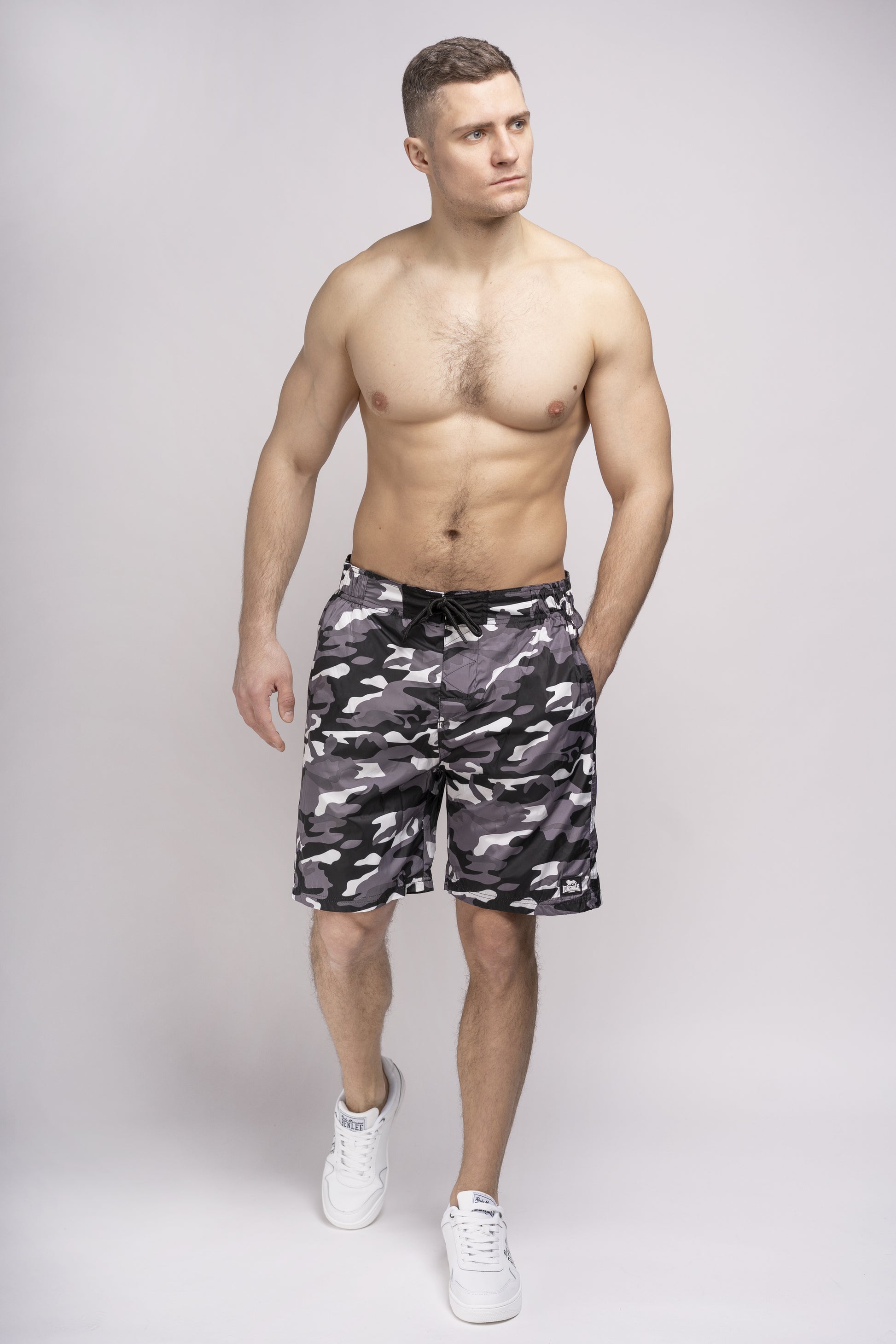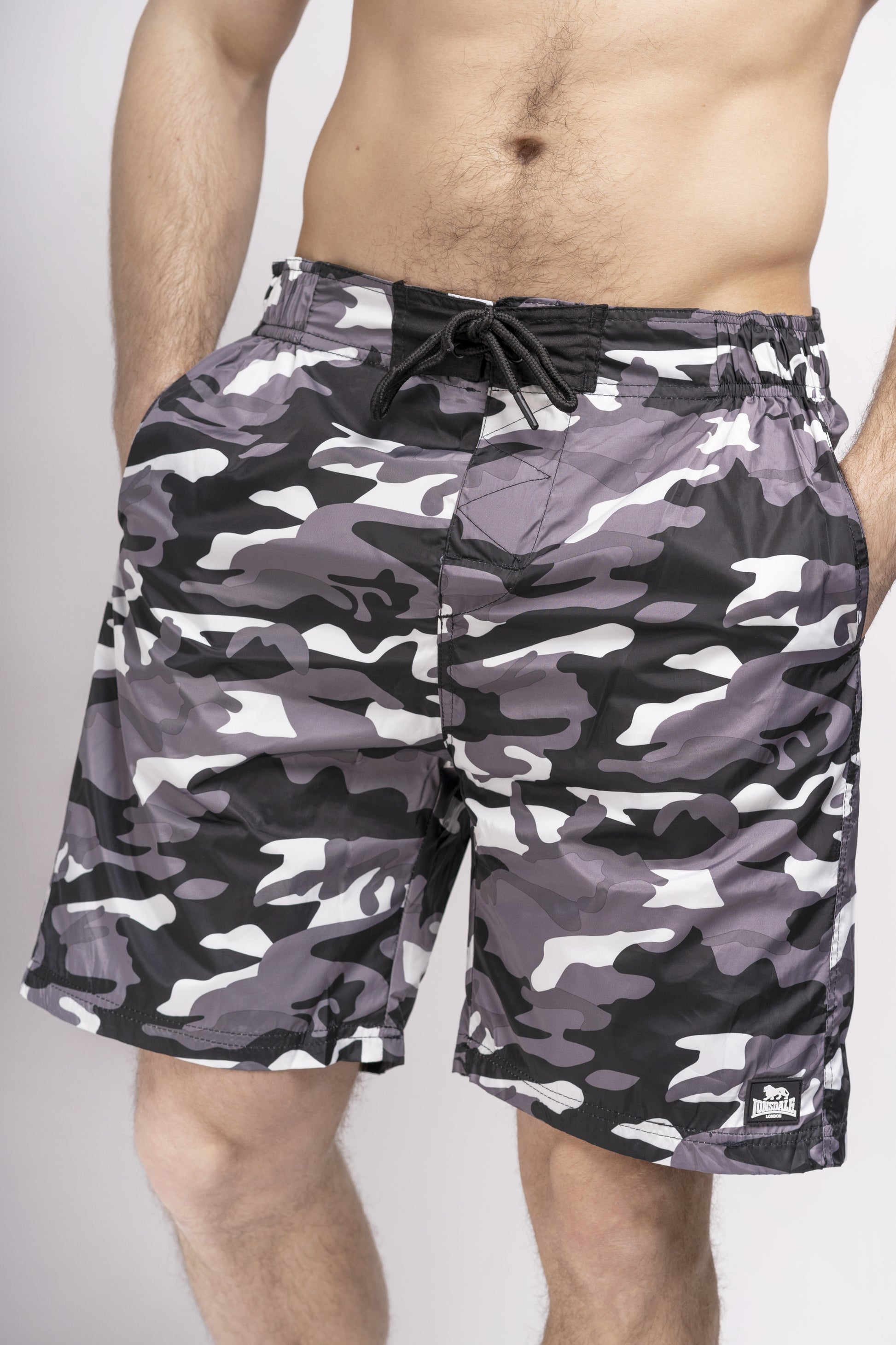 Lässige Badehose mit auffälligem Camouflage-Design und einem kleinen 3D-Gummi-Logo auf dem linken Hosenbein. Auf dem Weg zum Strand kannst du die wichtigsten Utensilien in den praktischen Taschen verstauen. Der Bund ist elastisch und passt sich optimal an deine Körperform an. Ein optimaler Begleiter für den Strand und das Freibad: die Badehose von Lonsdale.