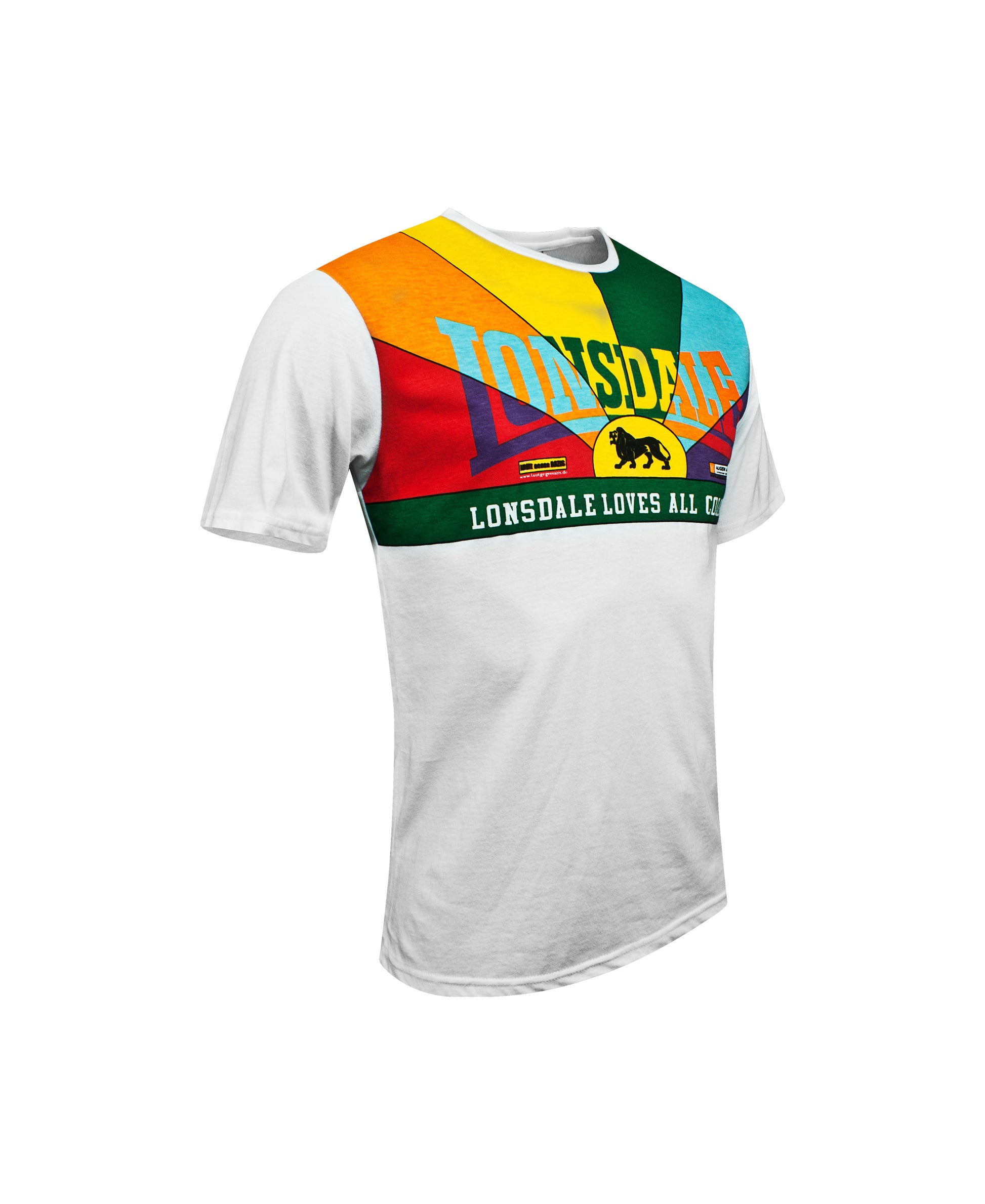 Mit diesem farbenfrohen T-Shirt von Lonsdale fällt es dir nicht schwer, deine Einstellung auszudrücken. Dafür sorgt der große „LOVES ALL COLOURS“ Print auf der Brust. Durch die Verwendung reinster Baumwolle bietet dir das Shirt neben dem coolen Look auch einen hohen Tragekomfort. Ob Gym oder ein geselliger Abend mit Freunden – das T-Shirt von Lonsdale eignet sich für alle Eventualitäten.