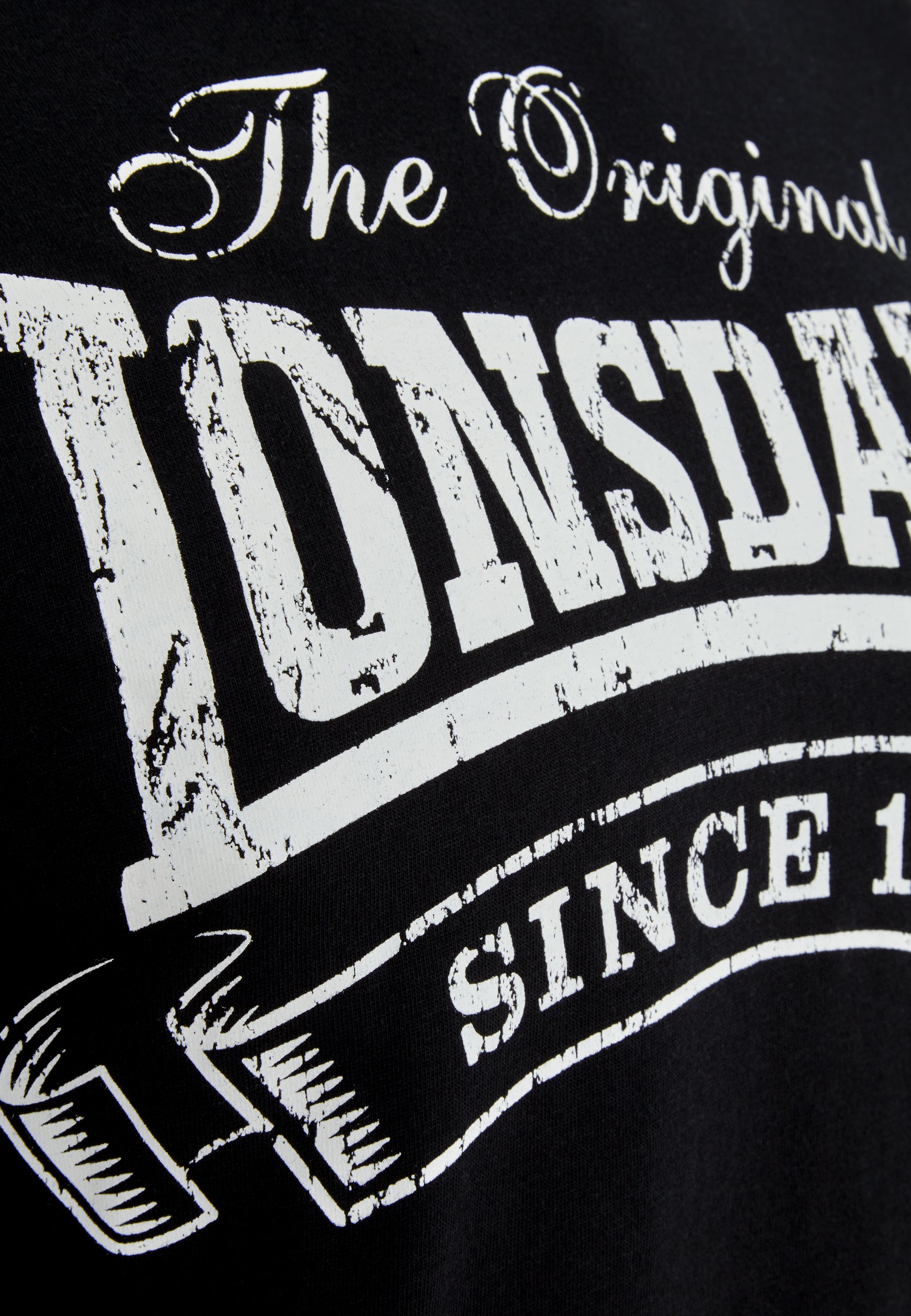 Das sportliche T-Shirt von Lonsdale überzeugt mit dem großen Frontprint in Vintage-Optik nicht nur optisch auf ganzer Linie, sondern bietet darüber hinaus einen sehr angenehmen Tragekomfort.