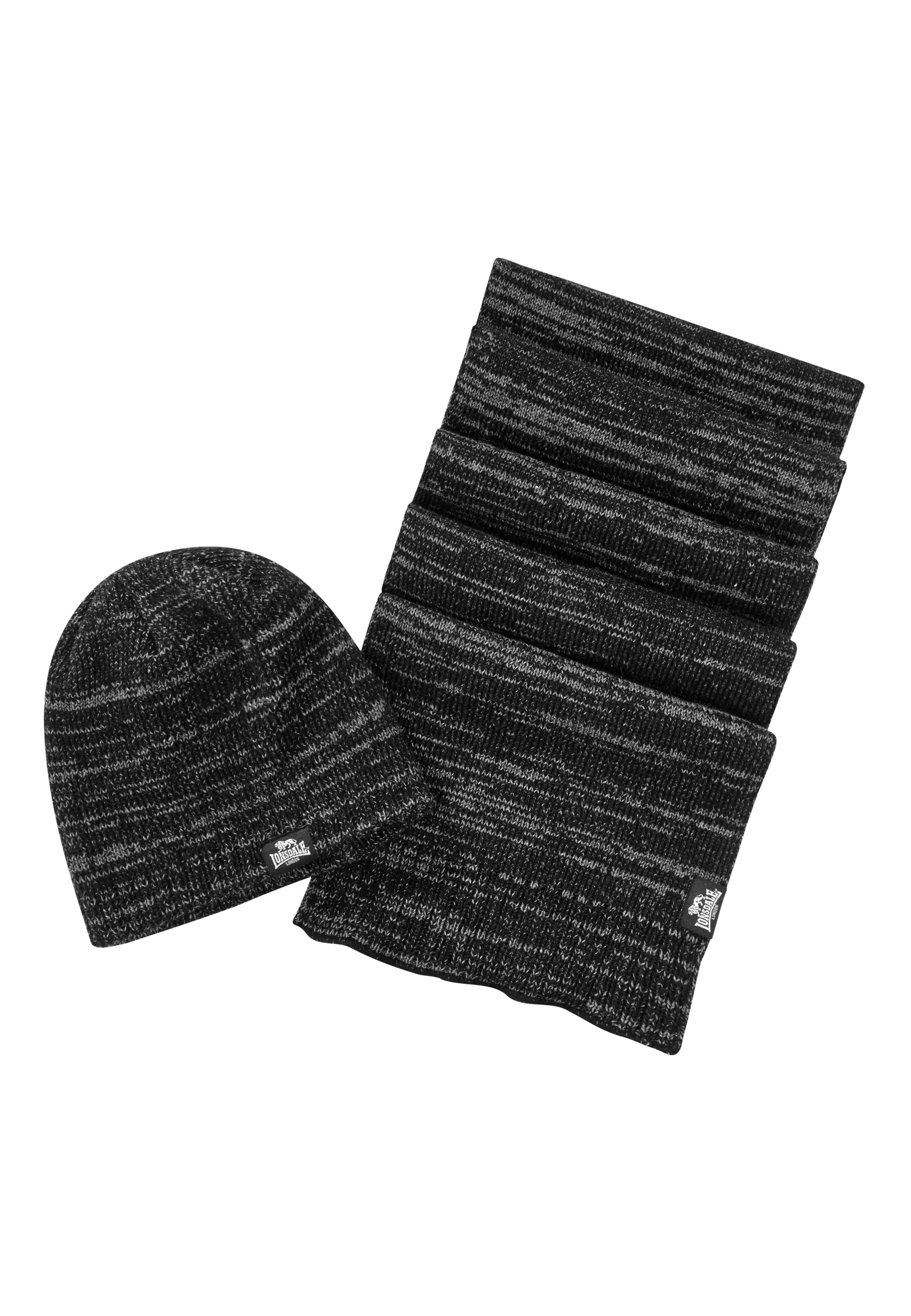 Das modische Winterset, bestehend aus Schal und Mütze, überzeugt nicht nur durch eine tolle Melange-Optik, sondern hält darüber hinaus auch wohlig warm.