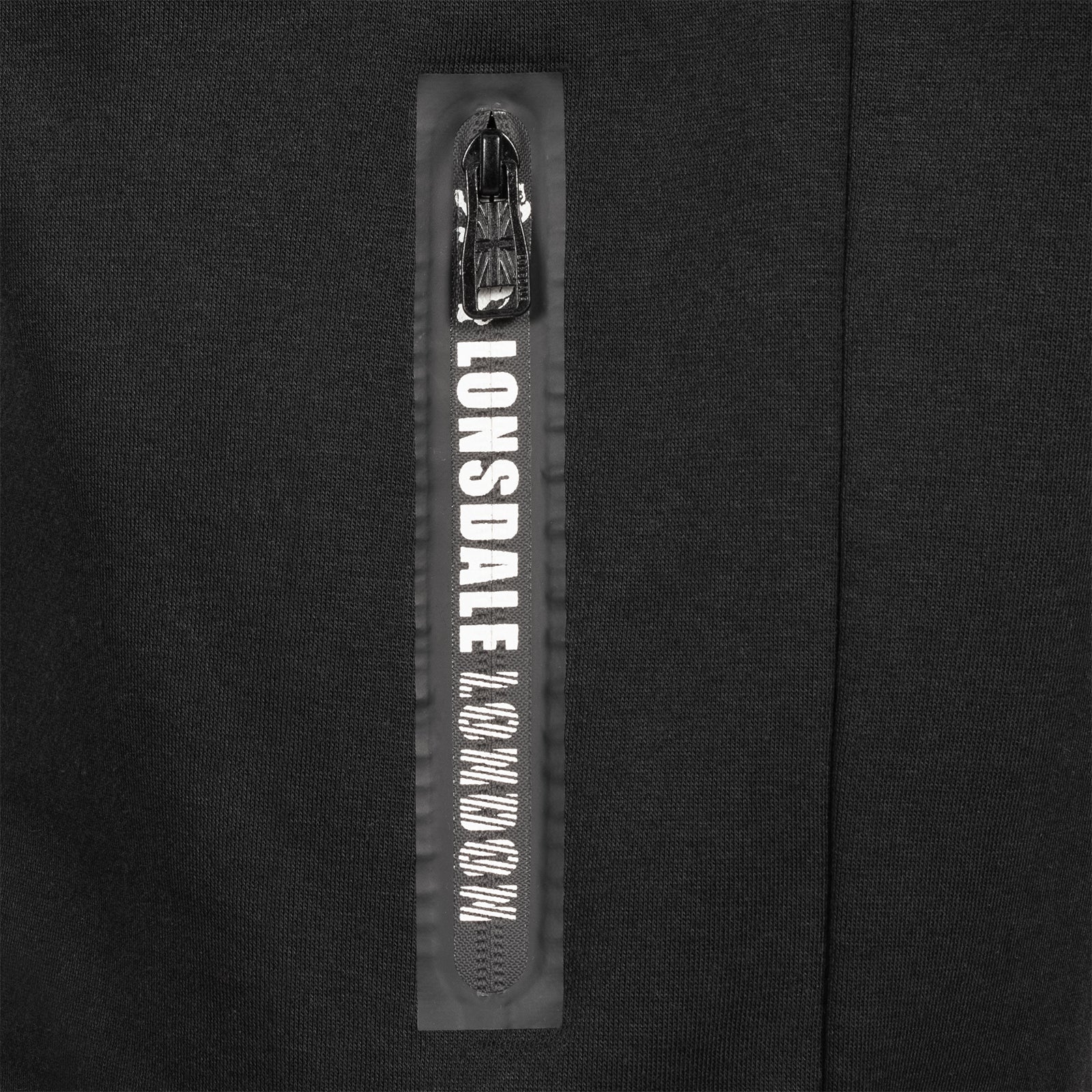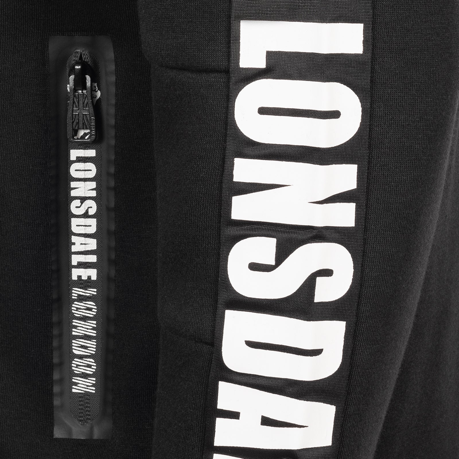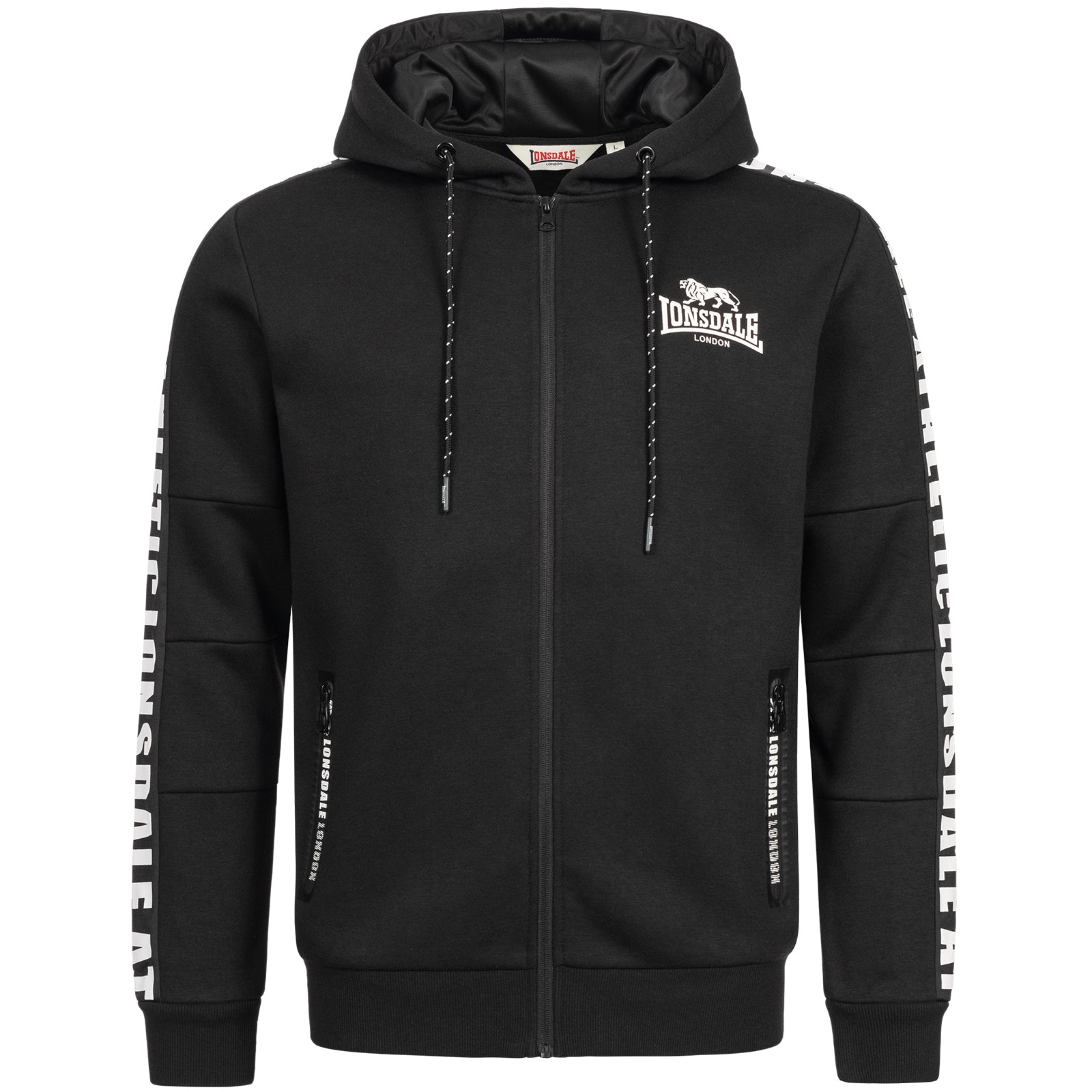 Die sportliche Kapuzenjacke von Lonsdale überzeugt mit vielen Details. Der durchgehende Reißverschluss erleichtert das An- und Ausziehen der Jacke erheblich. Für einen echten Hingucker sorgt nicht nur das Logo auf der Brust (3D Gummi Druck), sondern auch die bedruckten Ärmeleinsätze aus Trikot Fleece. Genügend Platz bieten dir die gummierten und bedruckten Reißverschlusstaschen an den Seiten. Ebenfalls praktisch ist die Kapuze. Sie schützt den Kopf vor Wind und kann durch die Kordelzüge reguliert werden. Alles in allem die ideale Jacke für Sport und Freizeit!