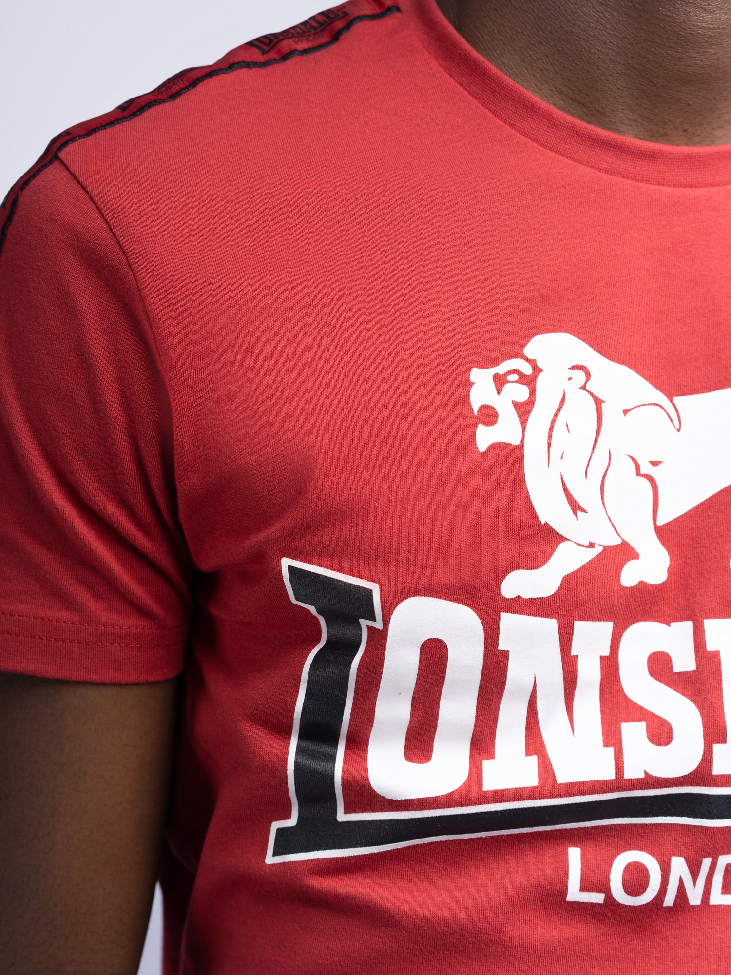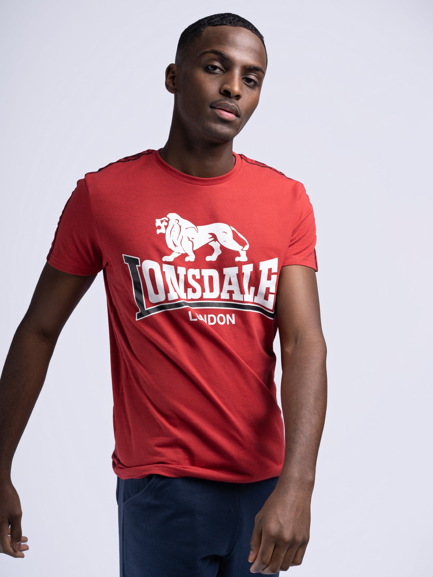 Das einfarbige T-Shirt von Lonsdale besticht durch einen großen Logo-Druck auf der Brust und applizierte Bänder auf den Schultern / Ärmeln. Es ist perfekt geeignet für einen lässigen Streetstyle mit Jeans und Sneakers.