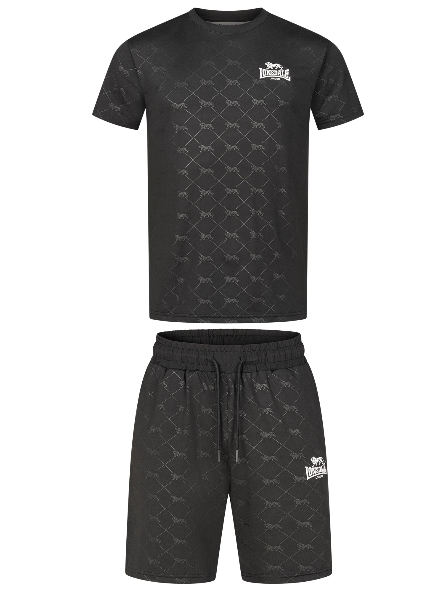 Perfekt für dein nächstes Workout: Dieses sportliche Set aus Funktionsshirt und Shorts vereint Komfort und Stil. Der subtile Allover-Print mit dem ikonischen Lonsdale-Löwen verleiht dem Outfit einen markanten Look, während kontrastfarbende Logo-Drucke für dezente Akzente sorgen. Die Shorts punkten zusätzlich mit praktischen Taschen und einem Kordelzug für individuelle Passform. Hol dir das ideale Outfit für dein nächstes Workout!