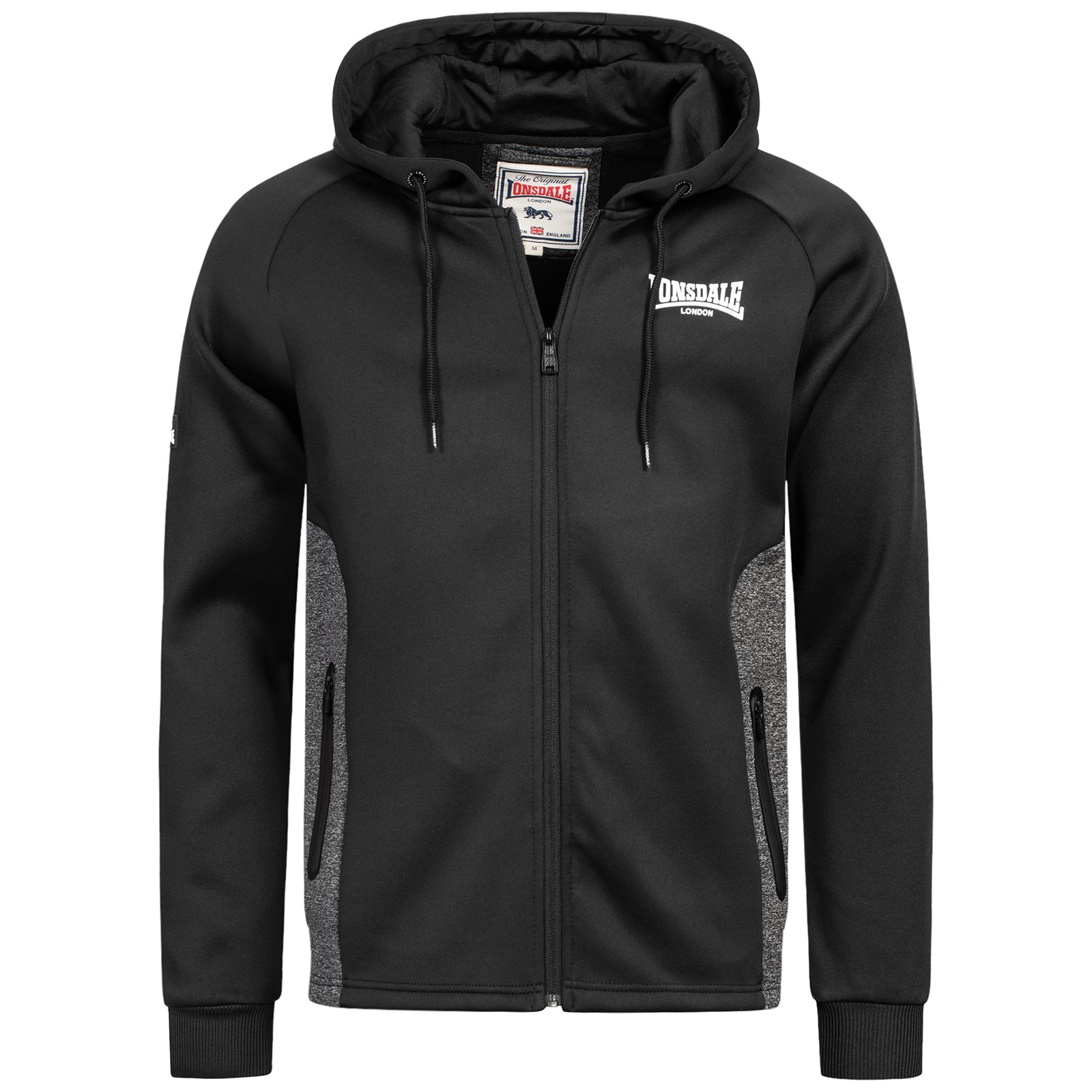 Unverzichtbar für entspannte Freizeit-Outfits mit sportlich-cooler Ausstrahlung: die zweifarbige Jacke von Lonsdale! Kleine Labeldetails werten das Design der Jacke auf und die Reißverschlusstaschen sorgen für den nötigen Komfort. Denn darin kannst du problemlos die wichtigsten Dinge verstauen, zB deinen Schlüssel oder das Handy. Sollte es mal stürmisch sein, schützen die Kapuze deinen Kopf und die elastischen Bündchen legen sich angenehm um deine Handgelenke, um den Wind abzuhalten.