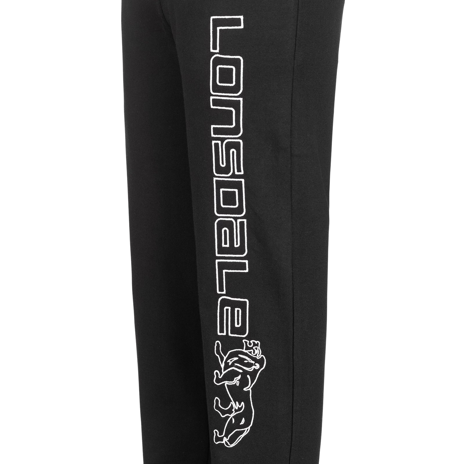 Die einfarbige Jogginghose von Lonsdale wird durch Details in Kontrastfarbe aufgewertet. Auf dem linken Hosenbein ist ein großer, gestickter Logo-Schriftzug sichtbar. Dieser passt farblich zu den Kordelzügen, die zusammen mit dem elastischen Bund für einen idealen Sitz sorgen. In den praktischen Eingriffstaschen können die wichtigsten Utensilien verstaut werden, zB ein Schlüssel. Die Seele baumeln und alle Fünfe gerade sein lassen – das geht besonders gut mit der bequemen Hose von Lonsdale. Sie ist gleichzeitig auch für eine Trainingseinheit geeignet.