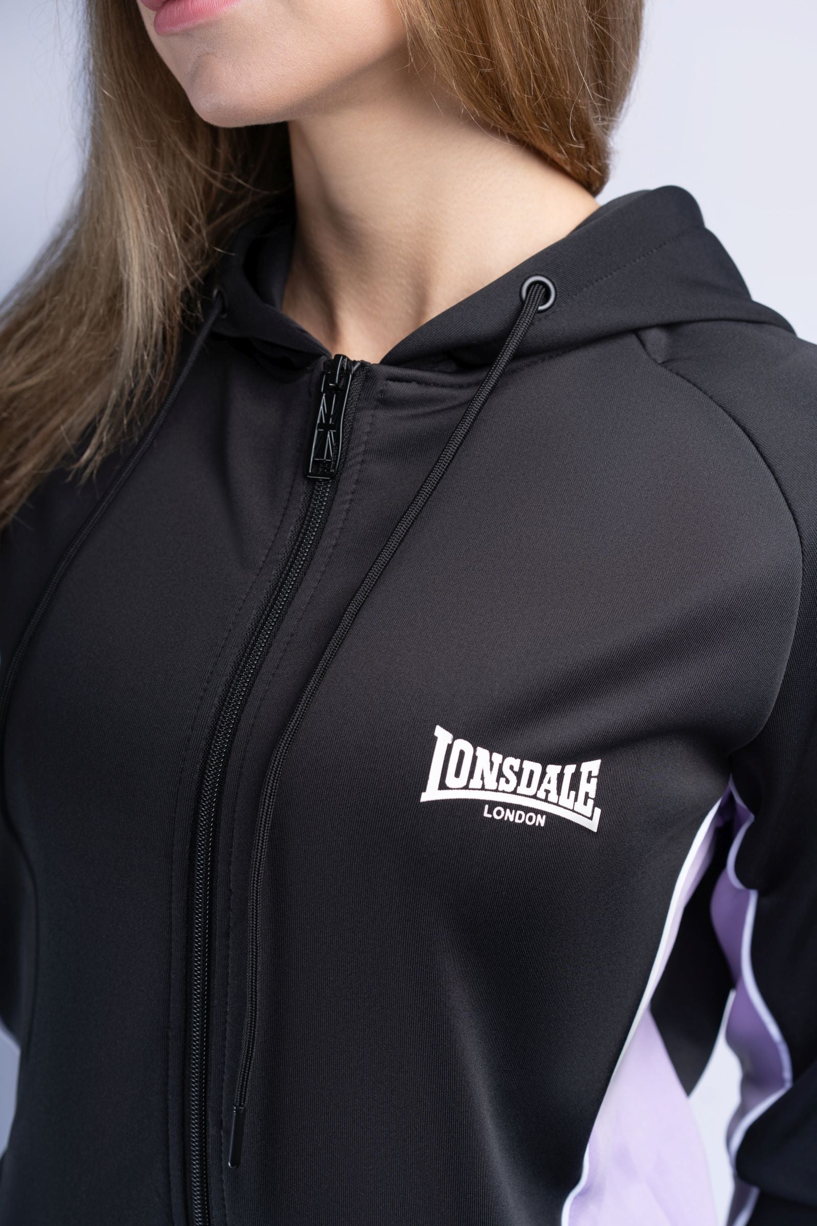In der heutigen Zeit sind Jogginganzüge im Alltag nicht mehr wegzudenken. Sei es beim Sport oder in der Freizeit. Sie gehören aufgrund Ihrer Flexibilität in jede Garderobe. So auch der Trainingsanzug mit kontrastfarbenen Stoffeinsätzen von Lonsdale. Der glatte Stoff fühlt sich angenehm auf der Haut an und zwickt nicht. Dank der Kordelzüge und des elastischen Bündchens kannst du die Größe individuell einstellen und in den seitlichen Taschen ist Platz für kleinere Gegenstände. Perfekte Voraussetzungen für ein Workout.