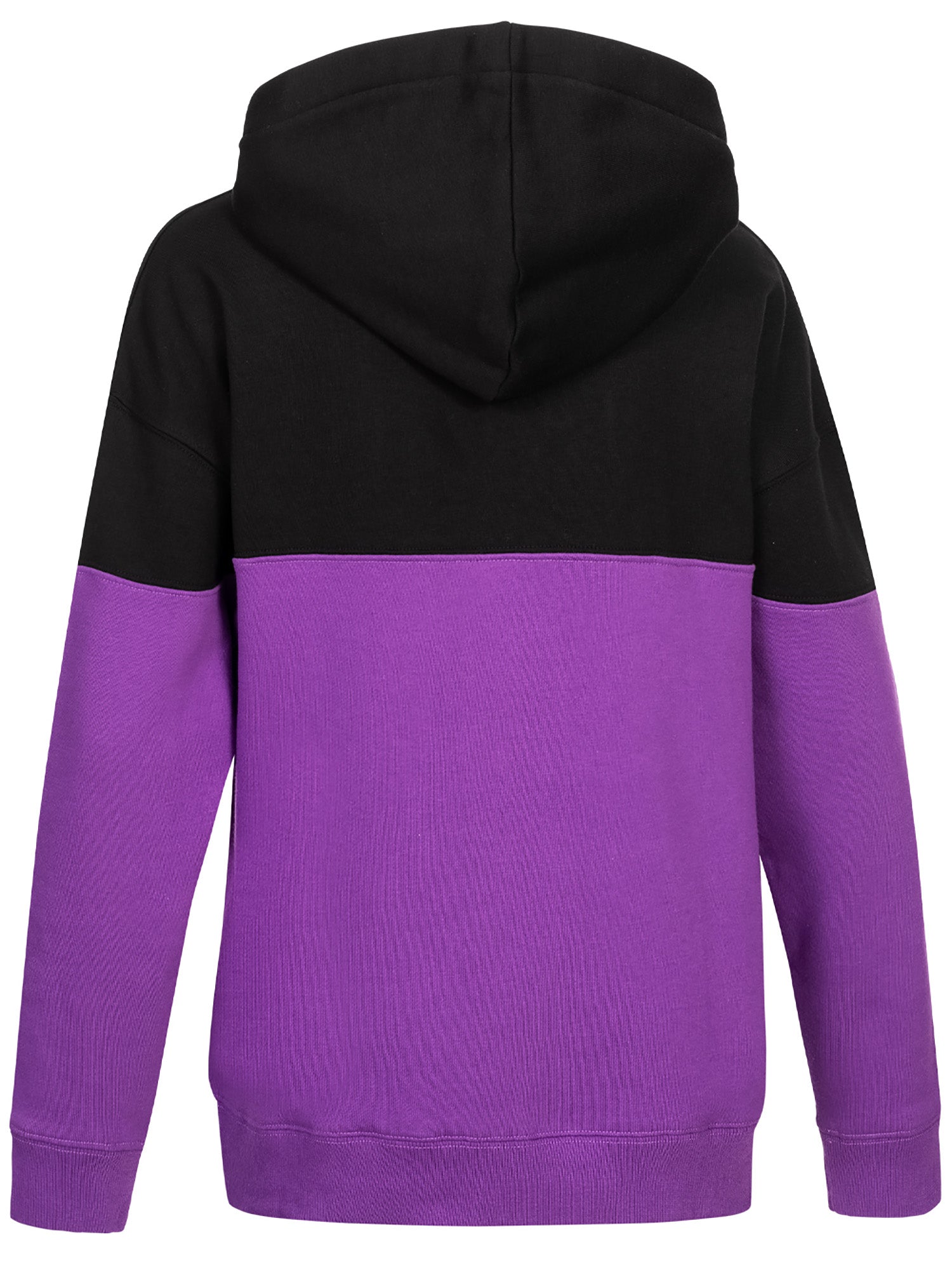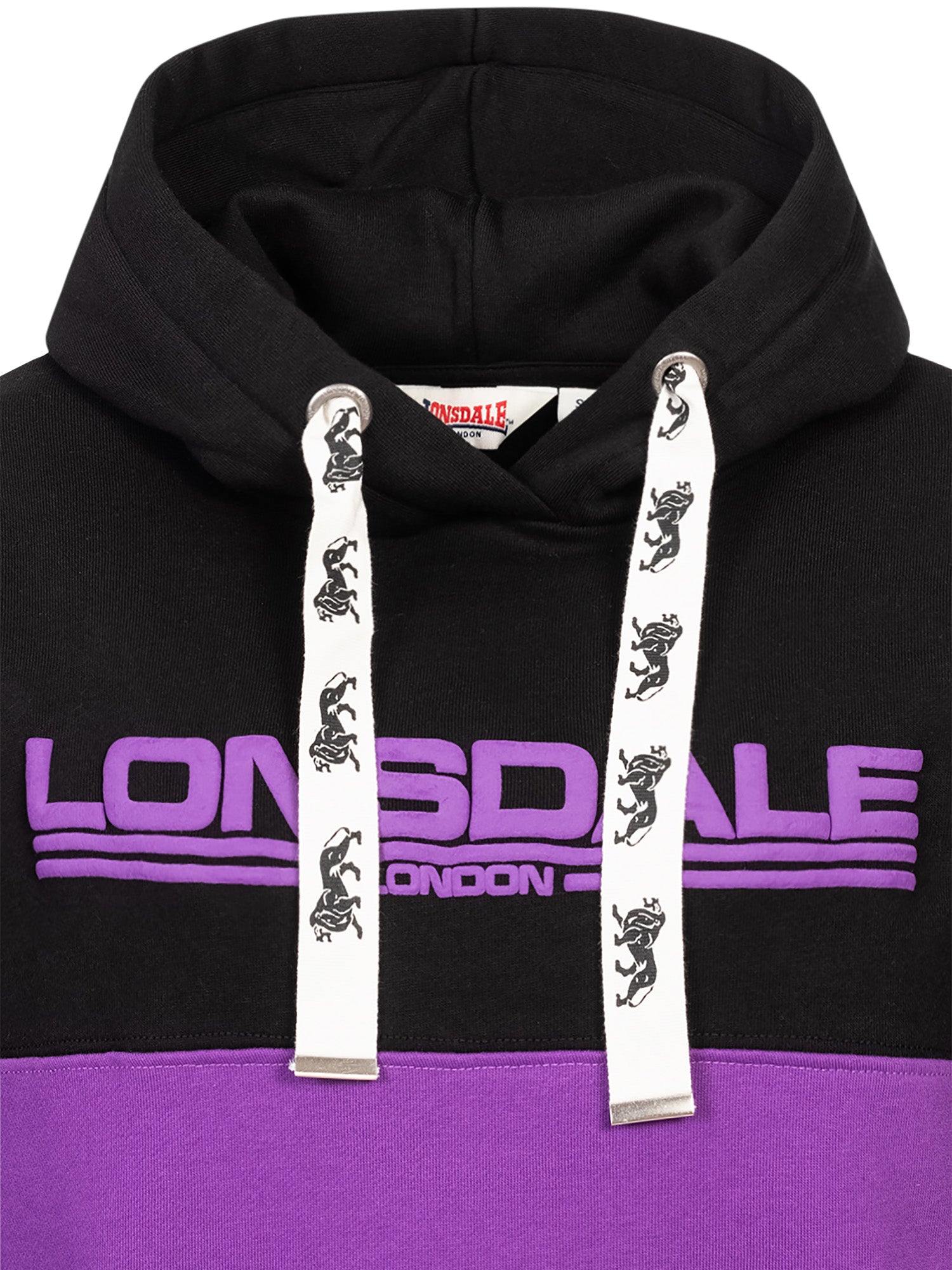 Der Hoodie im Colour-Blocking-Design ist aufgrund seiner weiten Passform (Oversize) für einen besonders lässigen Look geeignet. Während der Druck auf der Brust und die bedruckten Kordelzüge alle Blicke auf sich ziehen, sorgt die praktische Kängurutasche für den nötigen Komfort. Die elastischen Rippbündchen an Ärmeln und Saum sowie die weiche Sweatqualität sorgen für einen hohen Tragekomfort. Mit anderen Worten: Das Kapuzensweatshirt von Lonsdale hält, was Frauen von bequemer Freizeitmode erwarten!